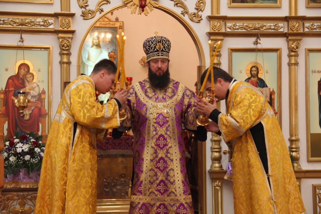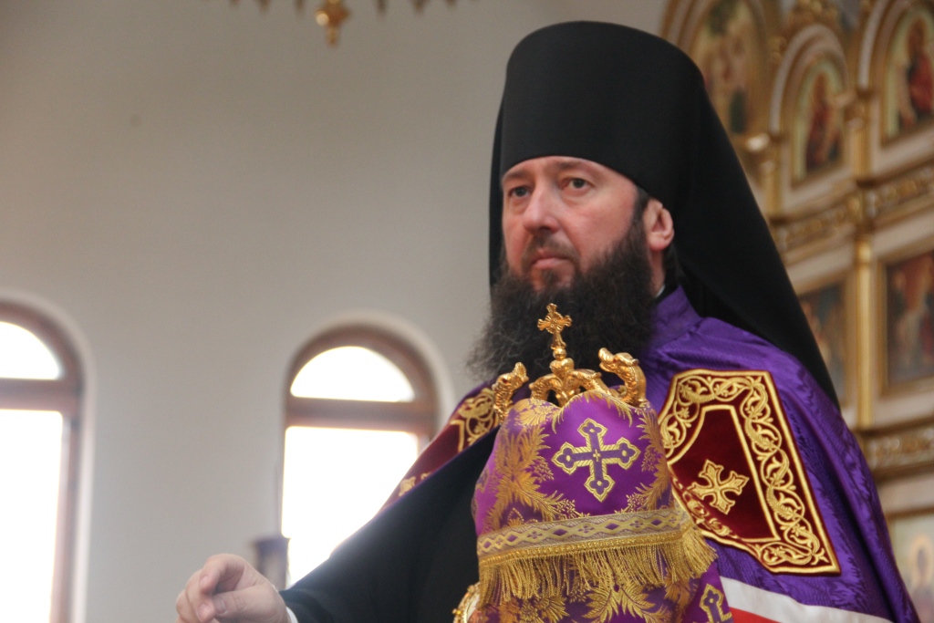 После того, как смолкли слова песнопений, Преосвященный епископ Амфилохий осенил молящихся Крестом Христовым и обратился ко всем с поздравительным словом.