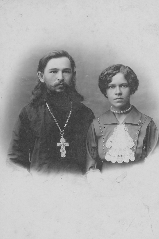 1) Настоятель Успенского храма г. Риддер прот. Алексий Подойников (расстрелян в 1937 г.) с супругой Евфалией Александровной Дагаевой (дочь сщмч. Александра Дагаева).
