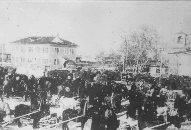 4) г. Риддер (1920-е годы). Базарная площадь, справа колокольня Успенского храма.