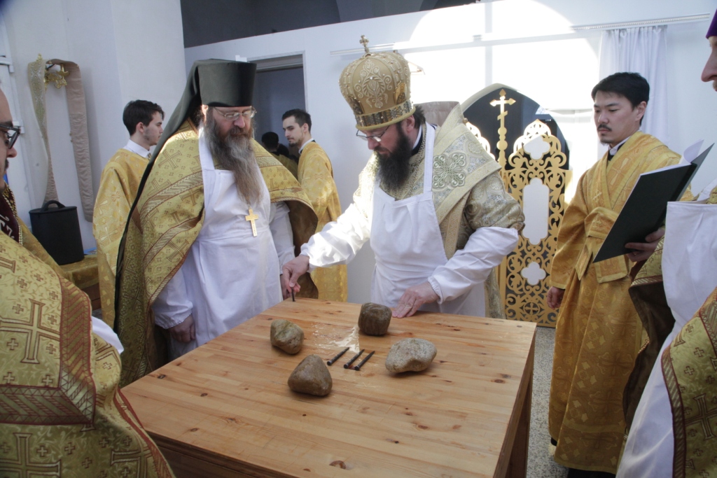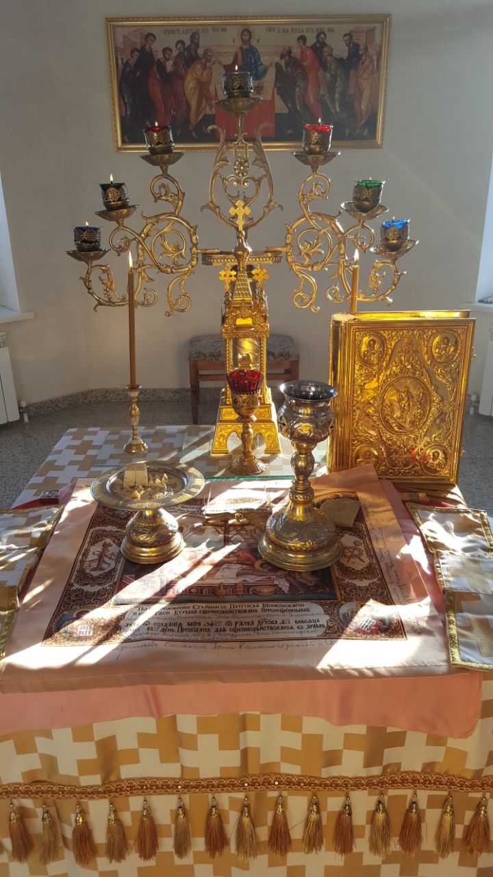 Престол – во имя святителя Николая, архиепископа Мир Ликийских, чудотворца, - освящен 16 декабря 2017 г. Преосвященнейшим Амфилохием, епископом Усть-Каменогорским и Семипалатинским.