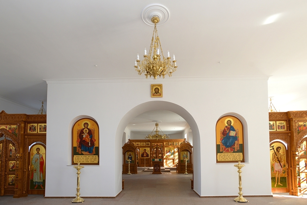 Храм трехпрестольный: главный престол – во имя Святой и Живоначальной Троицы, левый – во имя пророка Божия Илии и правый - во имя апостола и евангелиста Иоанна Богослова.
