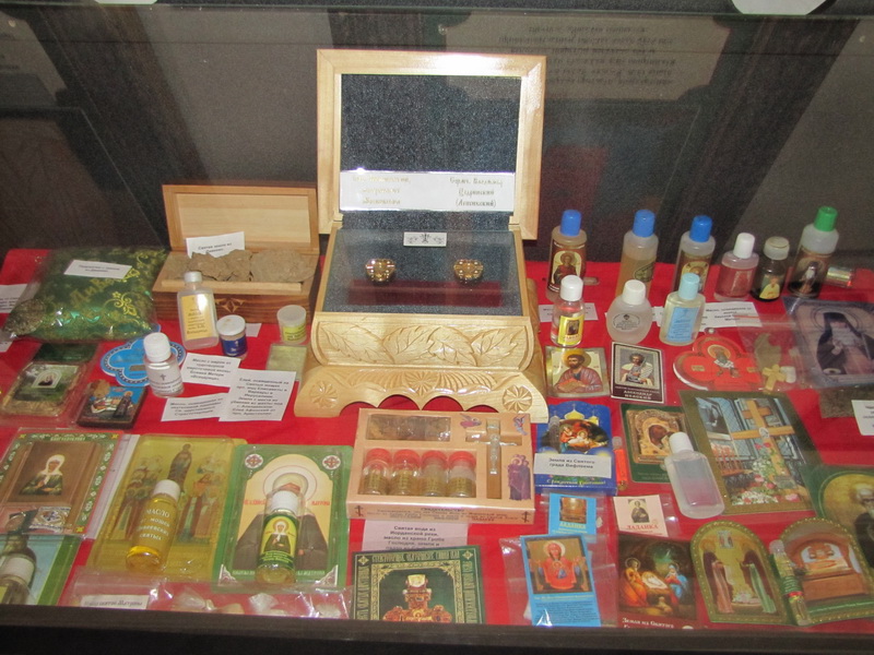 Ковчег с частицами святых мощей святителя Иннокентия, митрополита Московского, и священномученика протоиерея Владимира, Лепсинского; икона с частицей святых мощей святого праведного старца Феодора, Томского.
