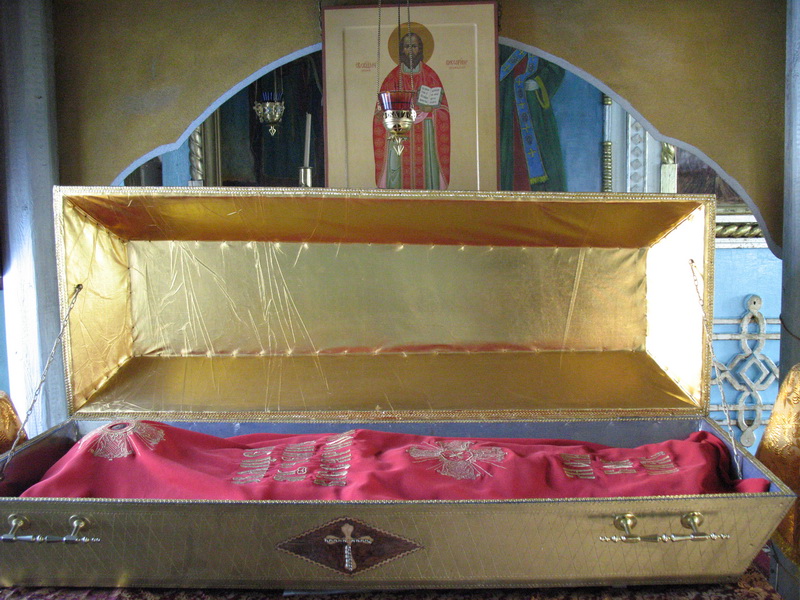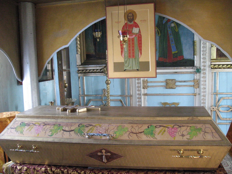 Мощи священномученика Виссариона почивают в деревянной раке в Свято-Ильинском храме с. Урджар.