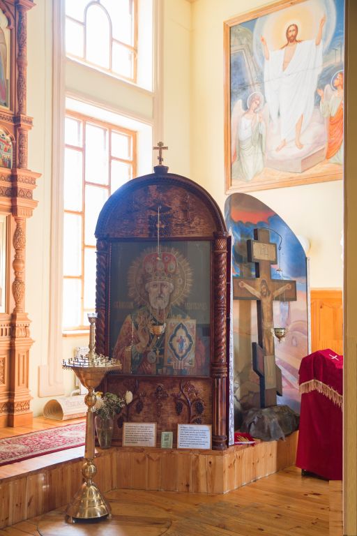 Престол: во имя святителя Николая, архиепископа Мир Ликийских, чудотворца, освящен 22 мая 2013 года Преосвященнейшим Амфилохием, епископом Усть-Каменогорским и Семипалатинским.