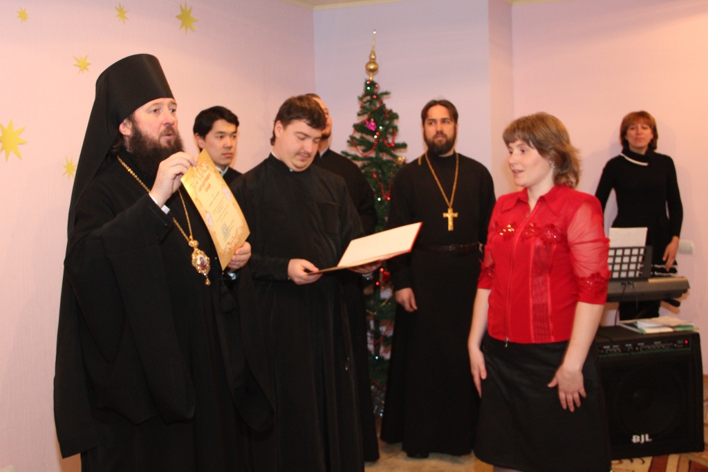 13 января в Центральной воскресной школе г. Усть-Каменогорска состоялся праздничный концерт, посвященный Празднику Рождества Христова и святкам. Преосвященнейший Амфилохий, епископ Усть-Каменогорский и Семипалатинский обратился с приветственным словом к преподавателям школы, детям и их родителям. Владыка поздравил собравшихся со святыми днями и вручил Благословенные Архиерейские грамоты преподавателям воскресной школы, принявшим участие в организации детских Рождественских мероприятий.