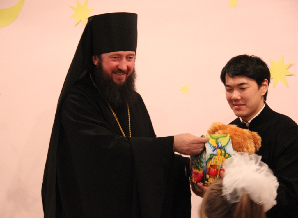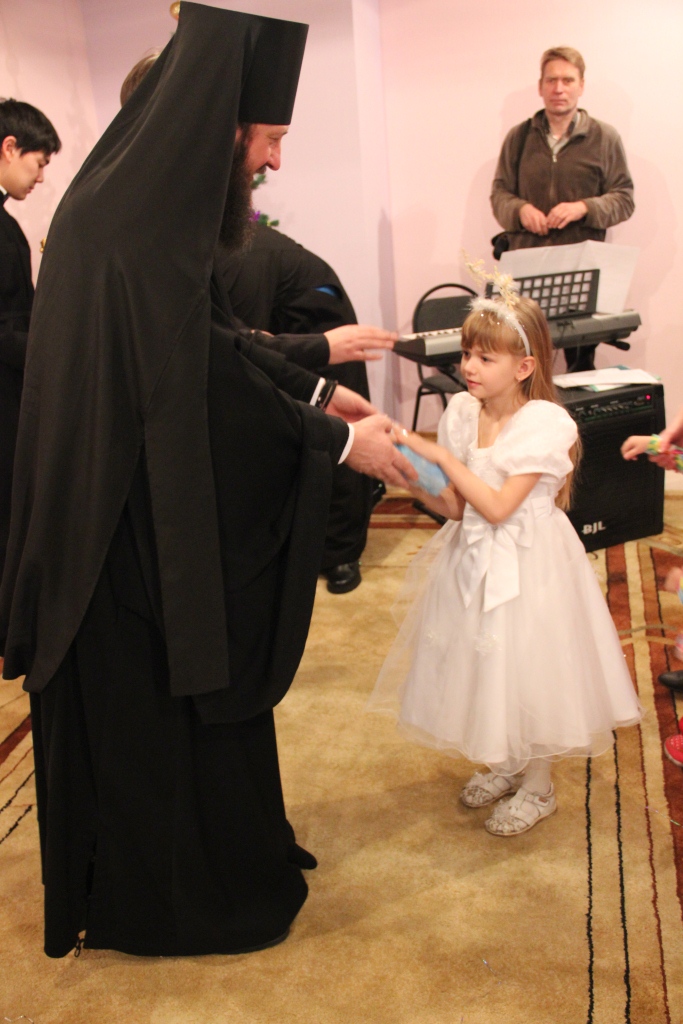 В праздничном концерте приняли участие более 50 детей. Дети пели колядки, танцевали, исполняли музыкальные произведения на фортепиано, рассказывали стихотворения. В заключение все участники получили из рук Преосвященного владыки Рождественские подарки.