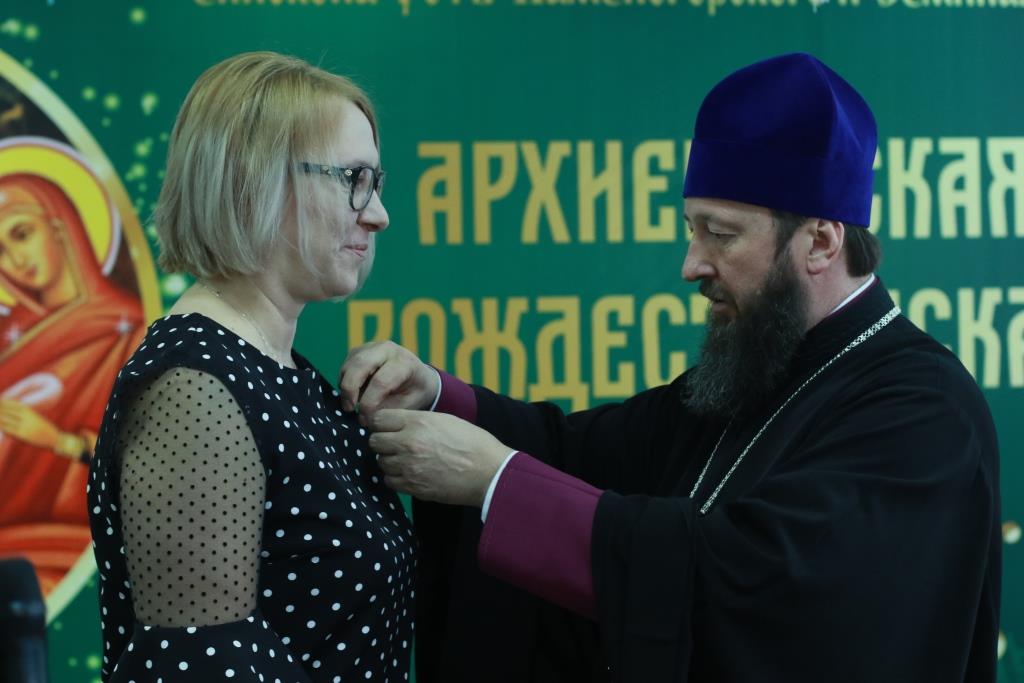 Епископ Амфилохий, за труды по воспитанию детей и молодежи, наградил медалью святых мучениц Веры, Надежды, Любови и матери их Софии директора Центральной церковно-приходской школы Кизилову О.А. и сотрудницу Группы Компаний «БИПЭК АВТО – АЗИЯ АВТО» Лазареву Е.А. за постоянную медийную поддержку всех детско-юношеских проектов епархии.