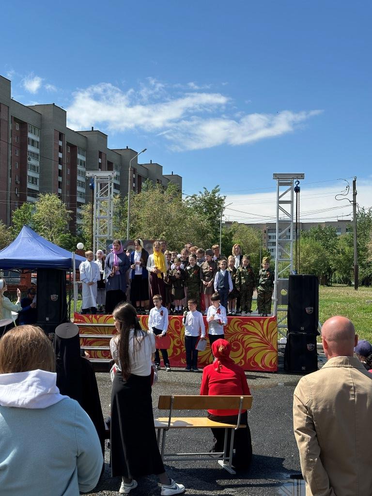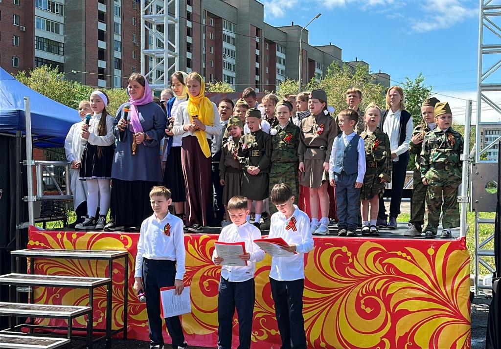 Дети приготовили для зрителей обширную программу: пели церковные песнопения и песни, читали стихотворения, разыгрывали театральные сцены, пели песни военных лет и декламировали стихотворения. Несколько военных песен исполнил клирик Андреевского собора протодиакон Андрей Дудник.