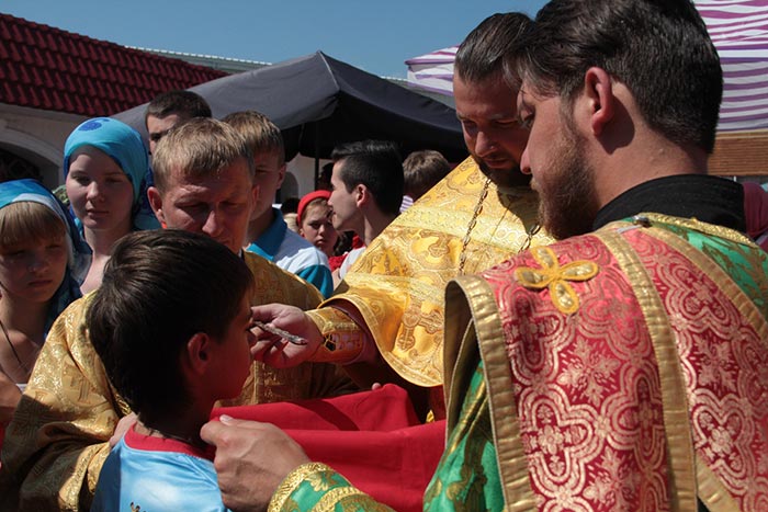 На территории лагеря действовал походный храм, в котором регулярно проводились богослужения. Все участники мероприятия приступали к Таинствам исповеди и Причастия.