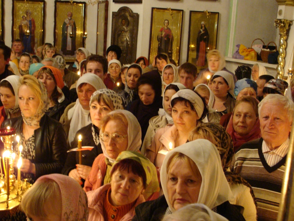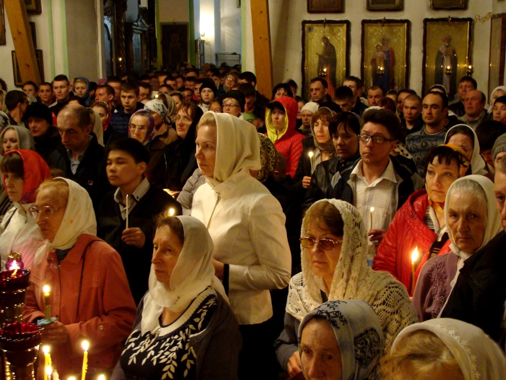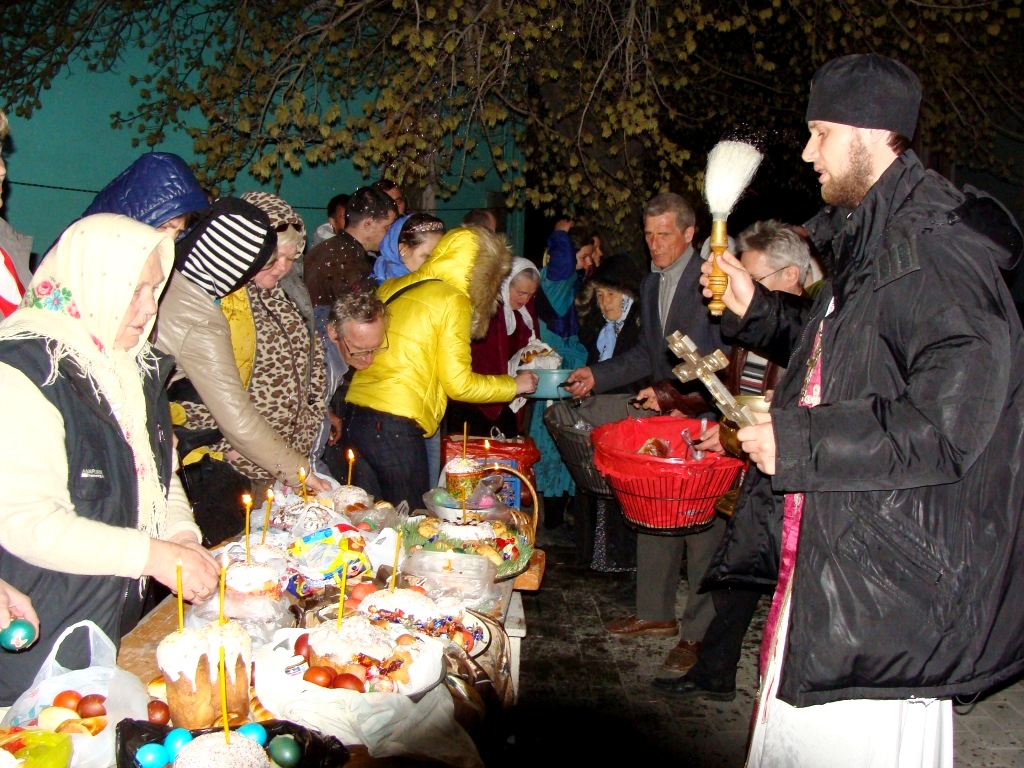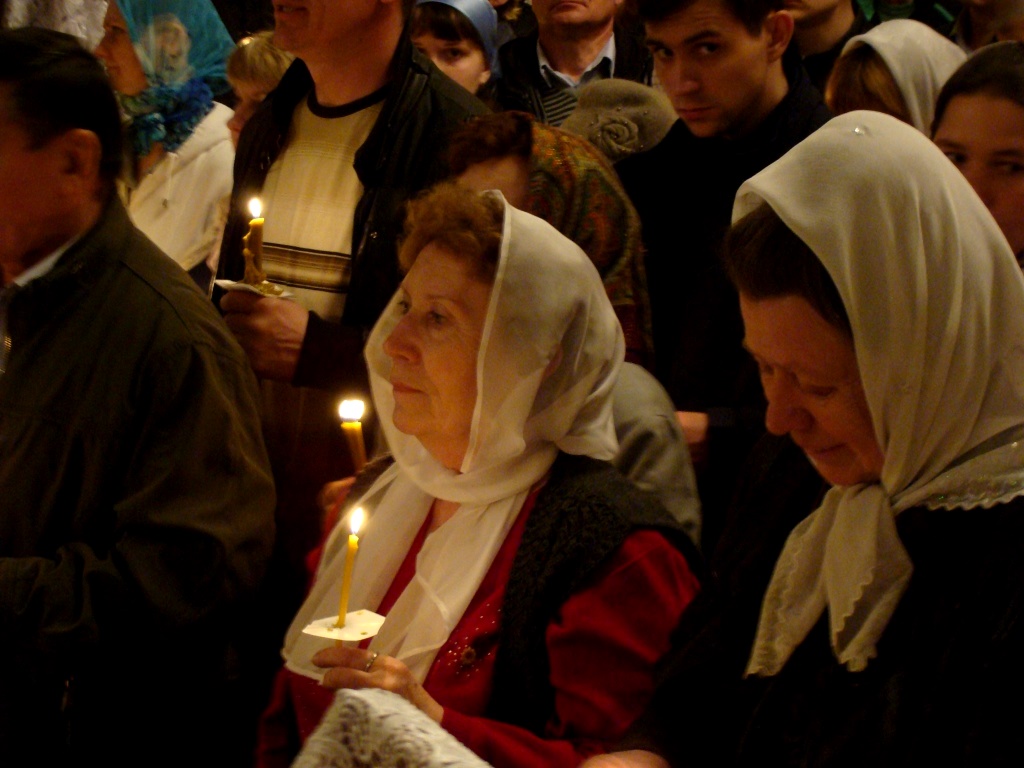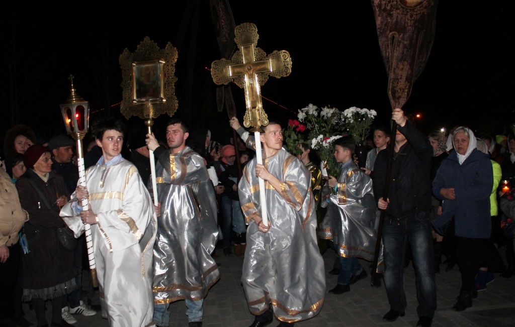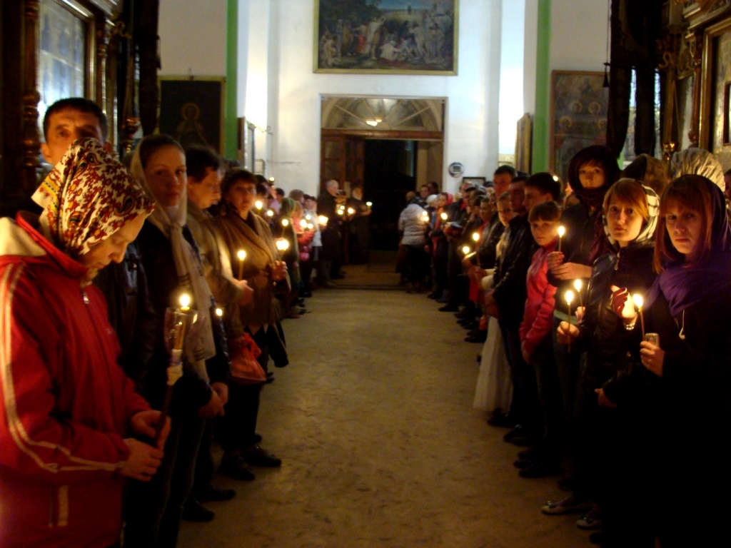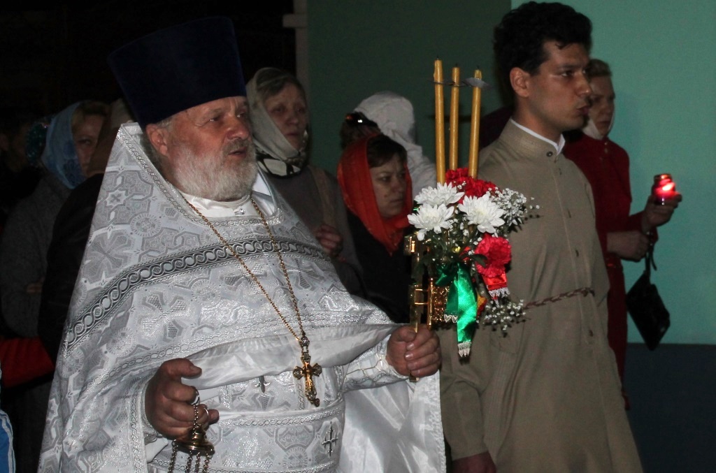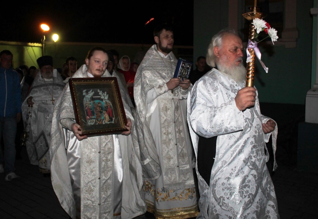 Затем клириками собора были совершены полунощница, крестный ход, Пасхальная заутреня и Божественная литургия свт. Иоанна Златоуста.
