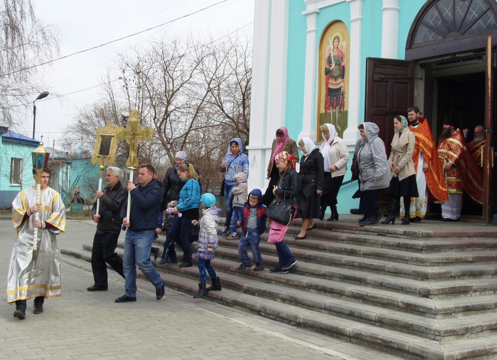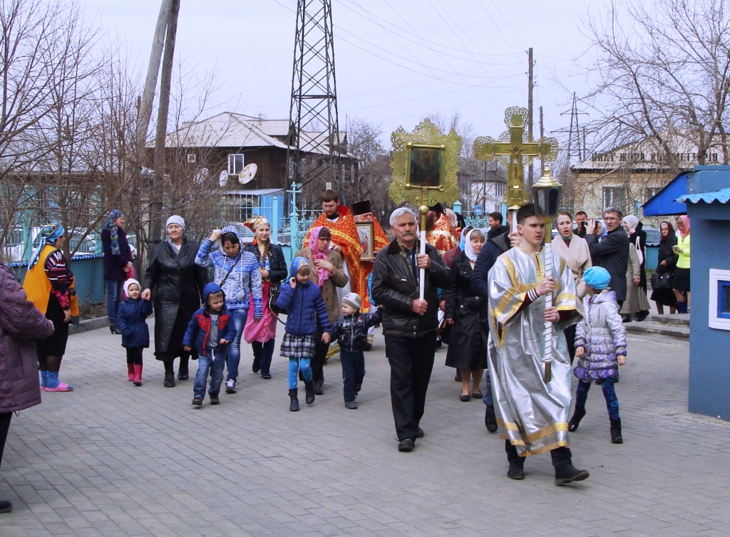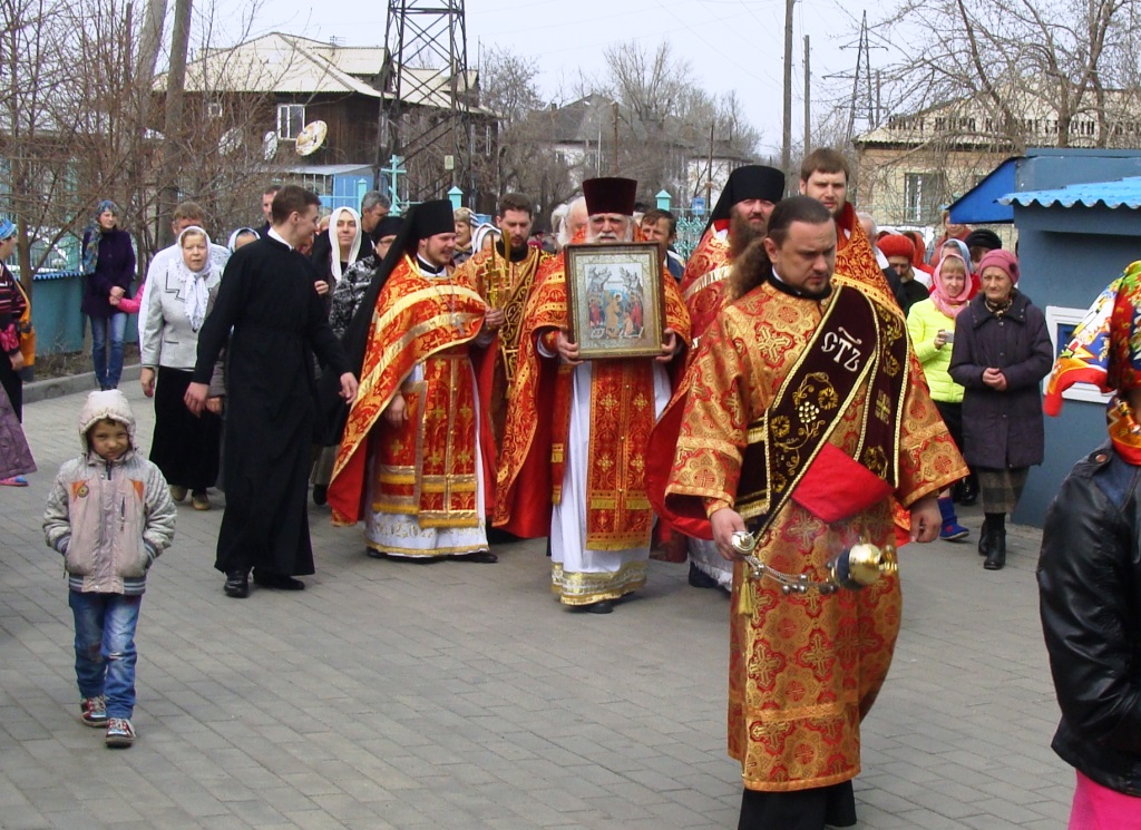 По окончании Литургии под пение пасхальных стихир вокруг Спасо-Воскресенского собора был совершен крестный ход.