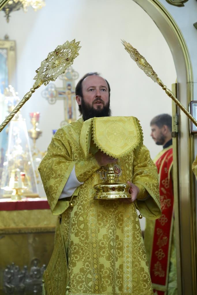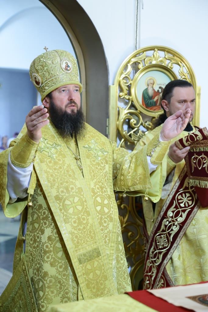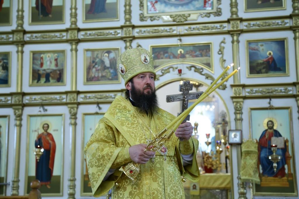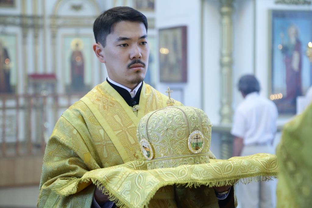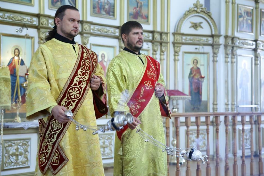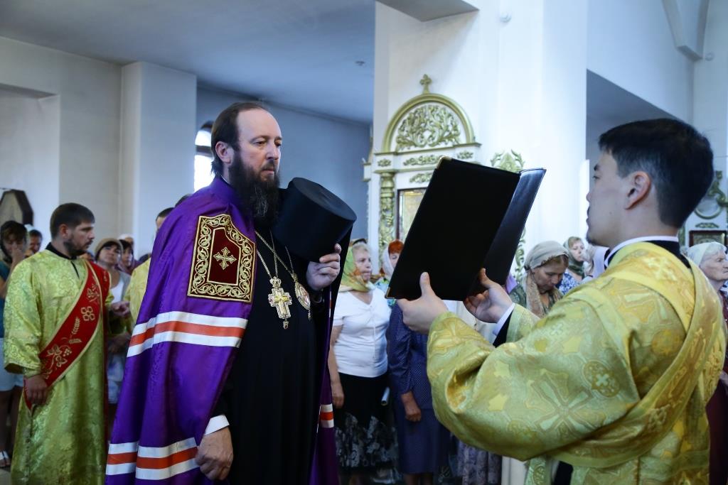 Преосвященнейшему Владыке сослужили: духовник епархии архимандрит Спиридон (Теплухин), ключарь кафедрального собора иеромонах Никодим (Авдеев), заведующий канцелярией епархии иерей Константин Дьяков, клирик Свято-Покровского храма города Усть-Каменогорска иерей Игорь Шагидевич. Диаконский чин возглавил протодиакон Георгий Засыпкин.
