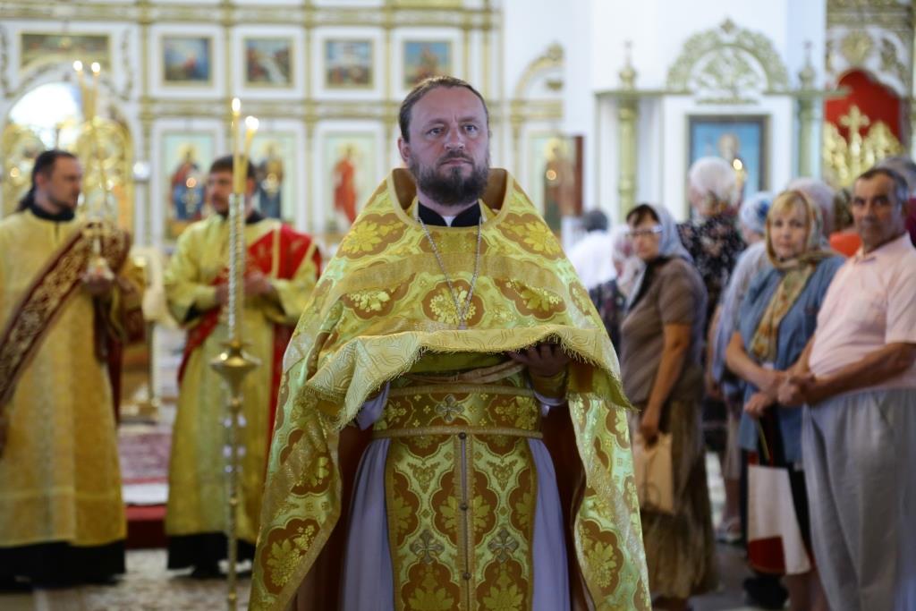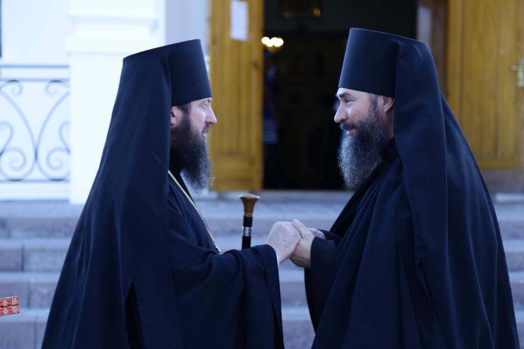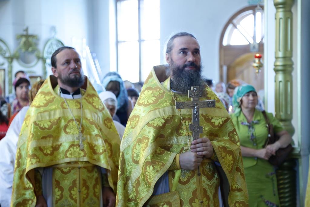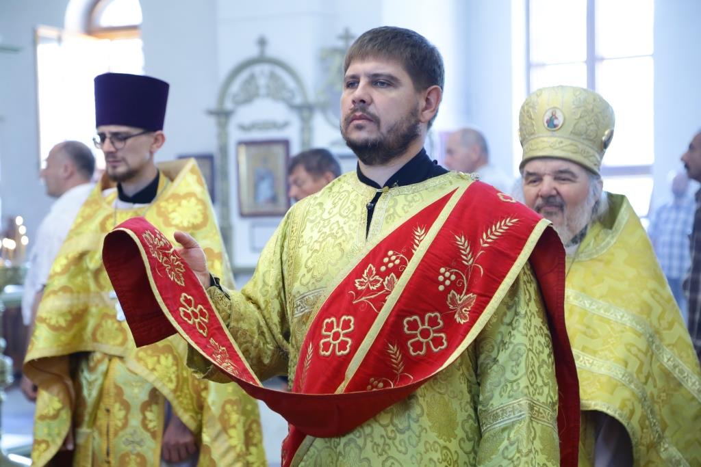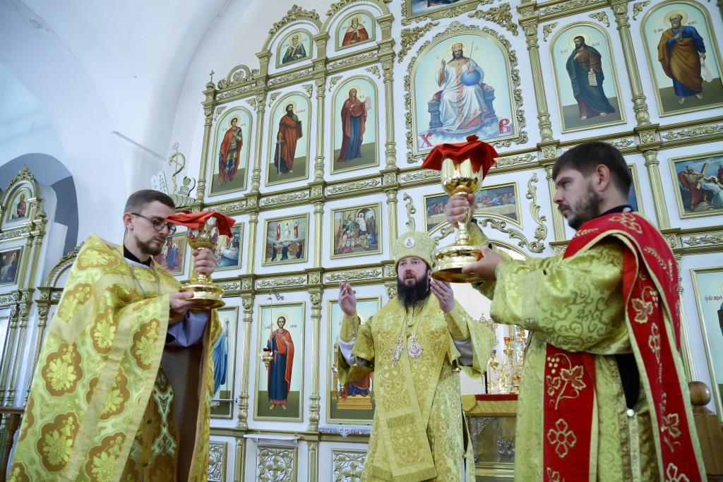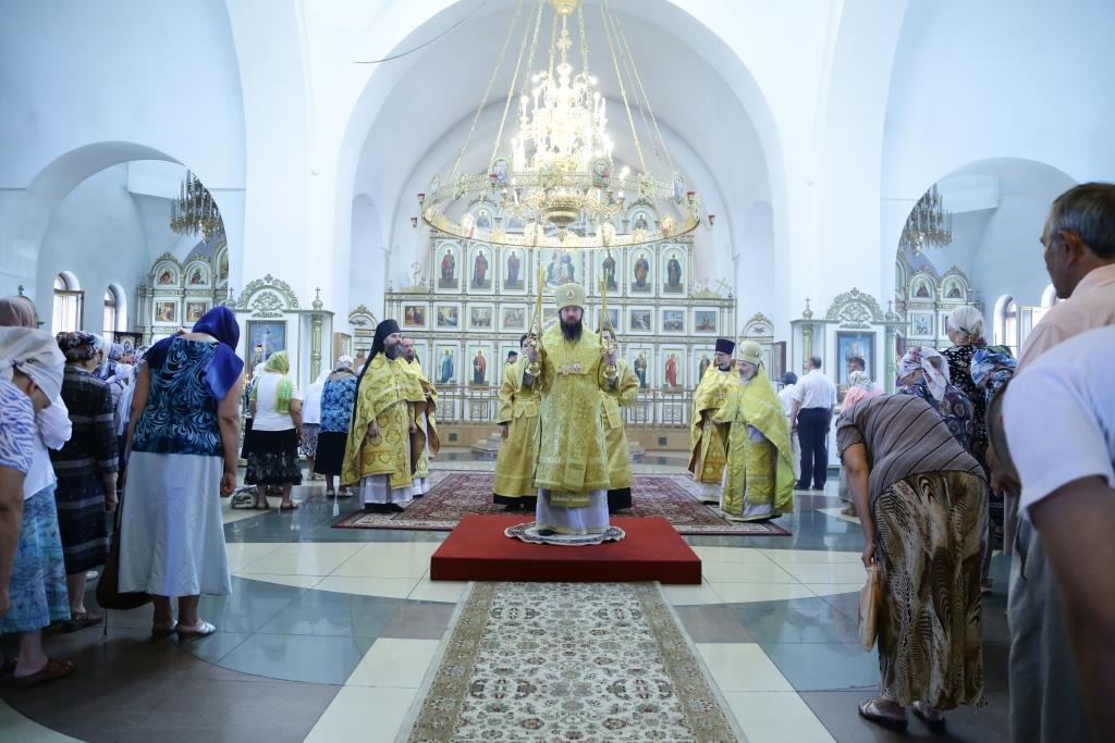 Преосвященнейшему Владыке сослужили: духовник епархии архимандрит Спиридон (Теплухин), ключарь кафедрального собора иеромонах Никодим (Авдеев), заведующий канцелярией епархии иерей Константин Дьяков, клирик Свято-Покровского храма города Усть-Каменогорска иерей Игорь Шагидевич. Диаконский чин возглавил протодиакон Георгий Засыпкин.
