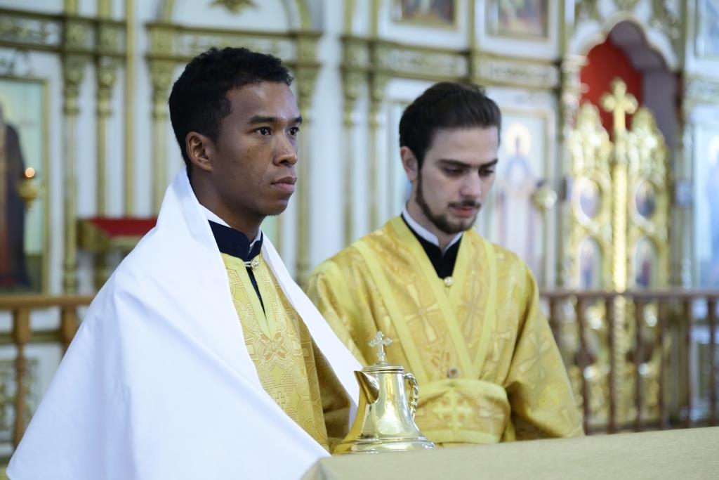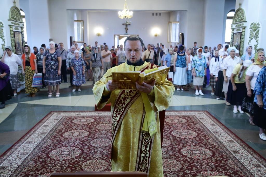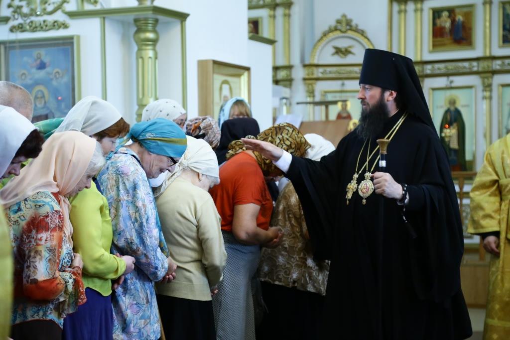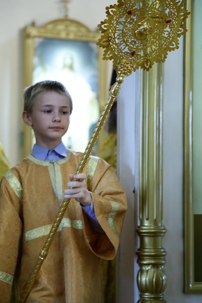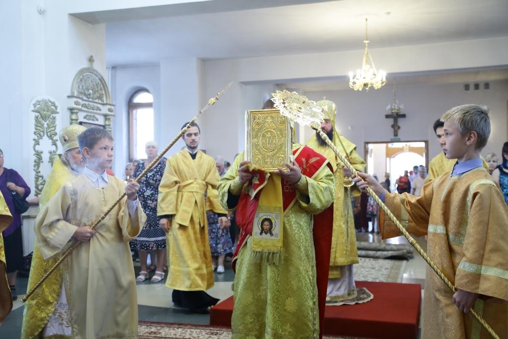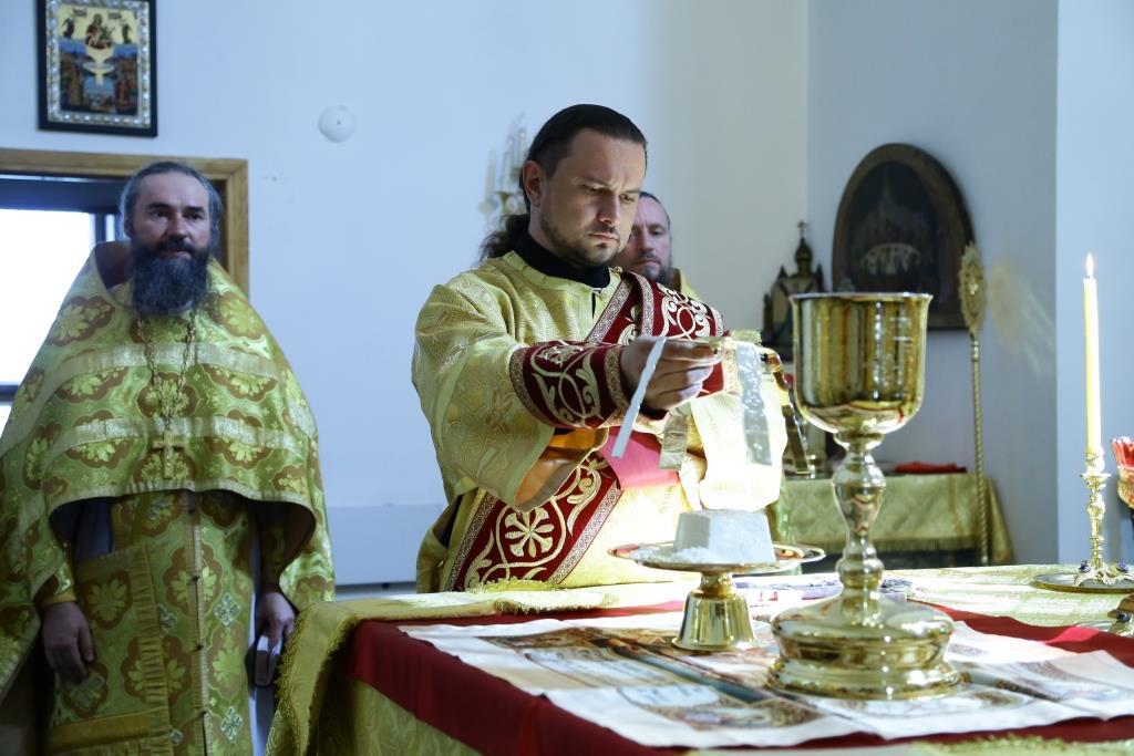 Преосвященнейшему Владыке сослужили: духовник епархии архимандрит Спиридон (Теплухин), ключарь кафедрального собора иеромонах Никодим (Авдеев), заведующий канцелярией епархии иерей Константин Дьяков, клирик Свято-Покровского храма города Усть-Каменогорска иерей Игорь Шагидевич. Диаконский чин возглавил протодиакон Георгий Засыпкин.