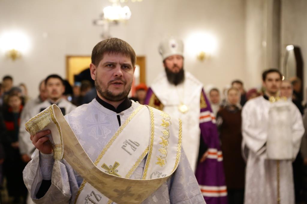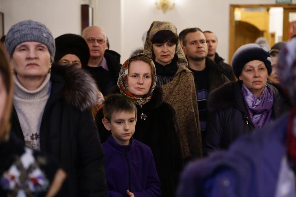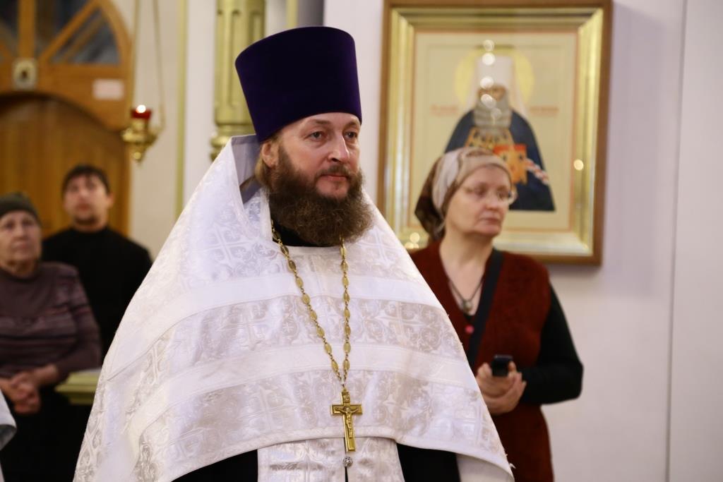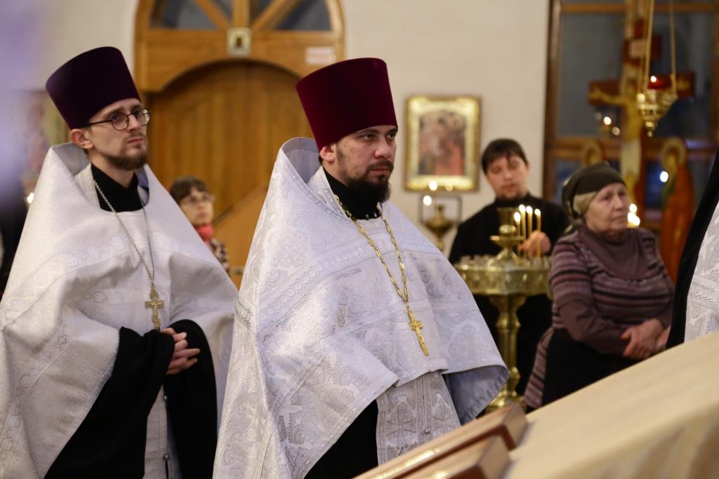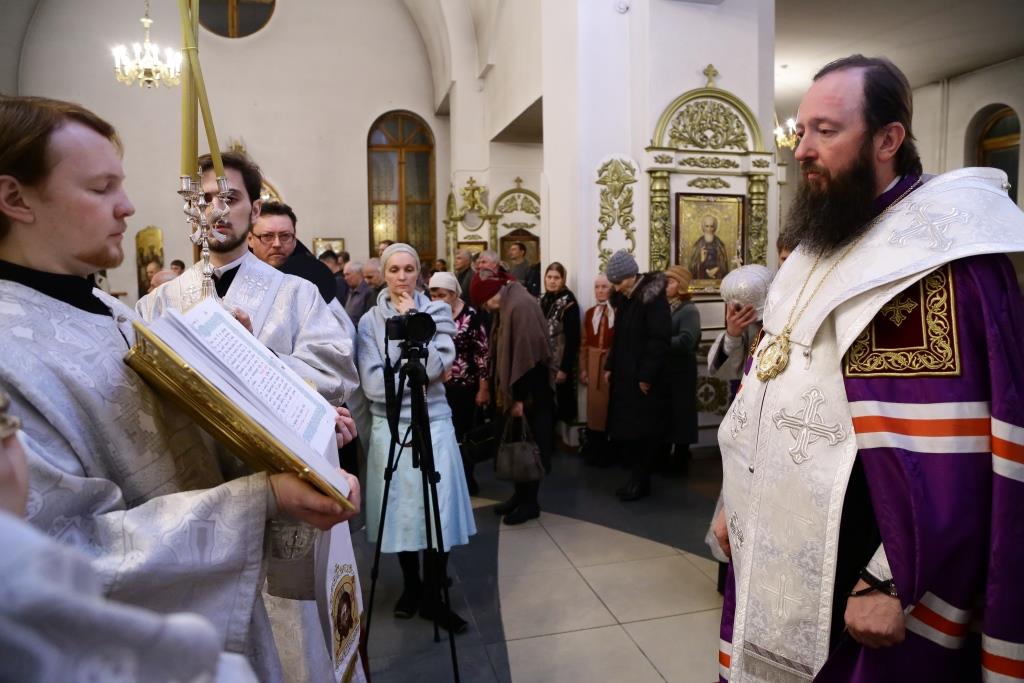 Его Преосвященству сослужили: и.о.секретаря епархии иерей Евгений Яганов, председатель Комисси по делам молодёжи иерей Вячеслав Гутов, настоятели храмов города, руководители епархиальных отделов и комиссий в священном сане, соборное духовенство.