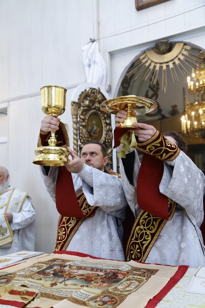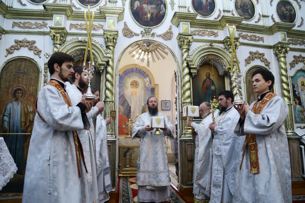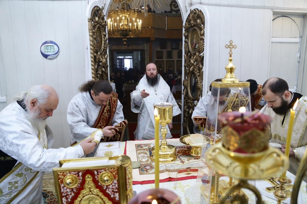 Песнопения Великой вечерни и Божественной Литургии исполнял хор Воскресенского собора под управлением регента Ю. Хохряковой.