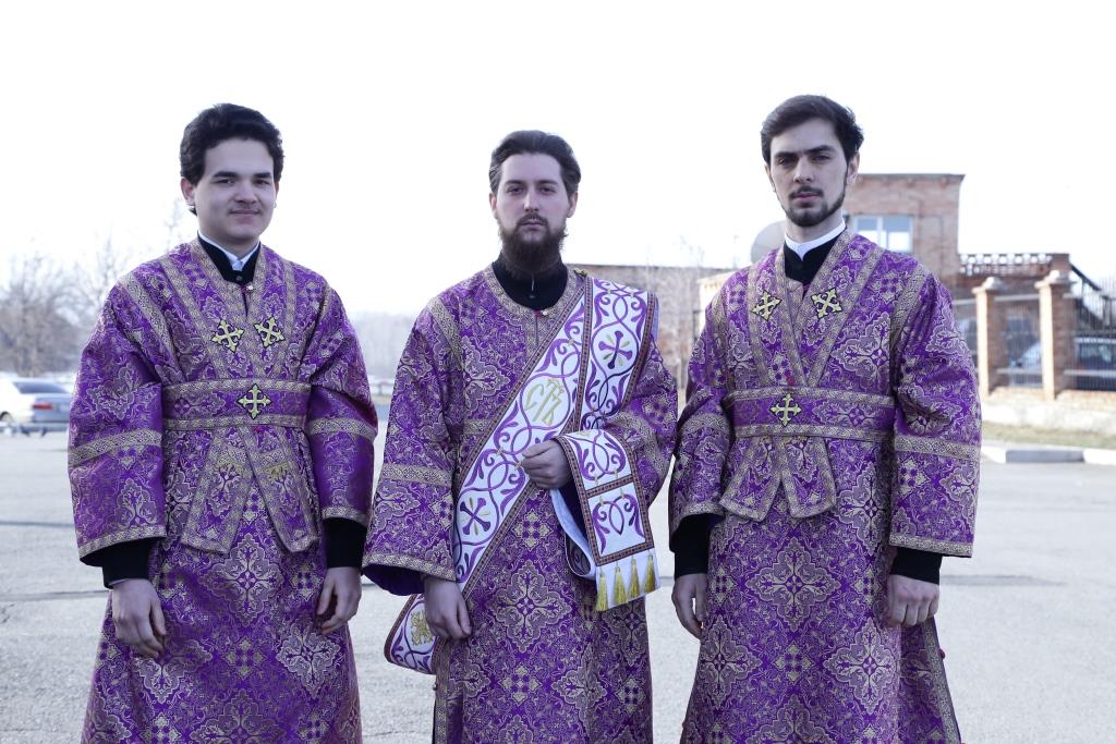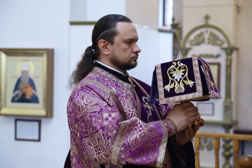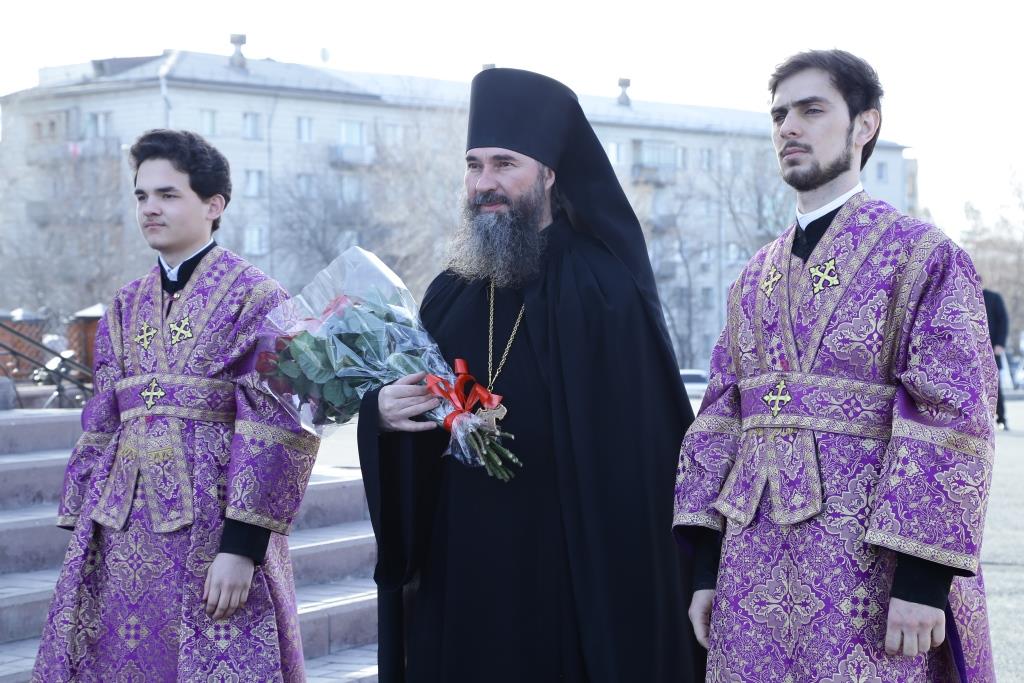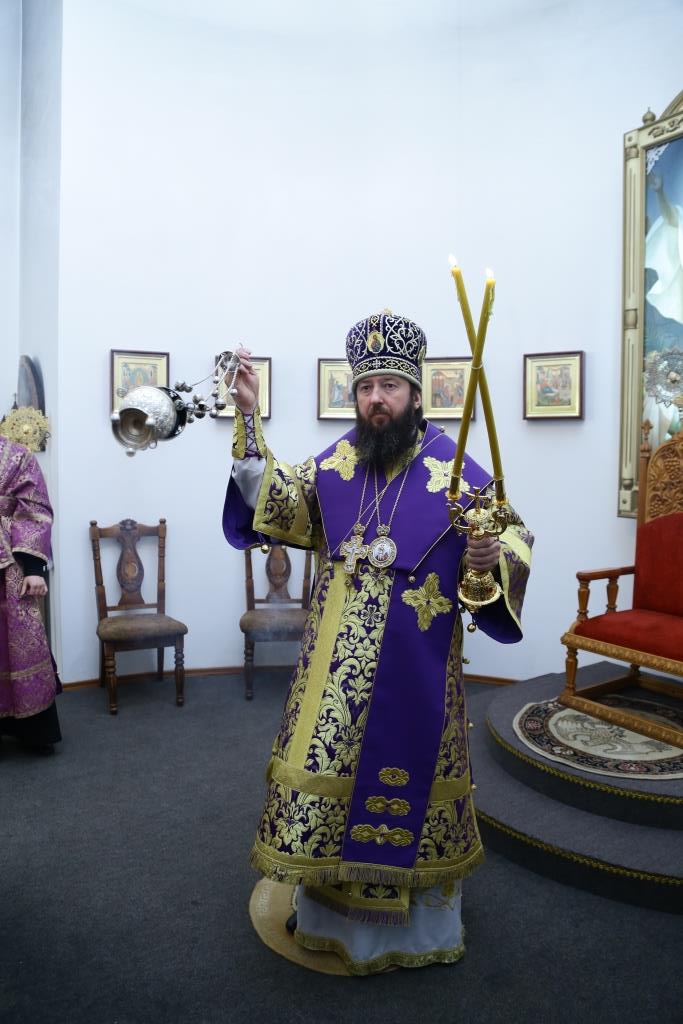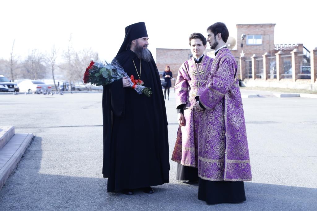 Его Преосвященству сослужили: духовник Усть-Каменогорской епархии архимандрит Спиридон (Теплухин), ключарь Андреевского собора иеромонах Никодим (Авдеев), заведующий Епархиальной канцелярией иерей Константин Дьяков, протодиакон Андрей Дудник, иеродиакон Мефодий (Шевчук), иеродиакон Тимофей (Хитрич).