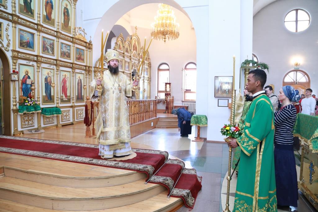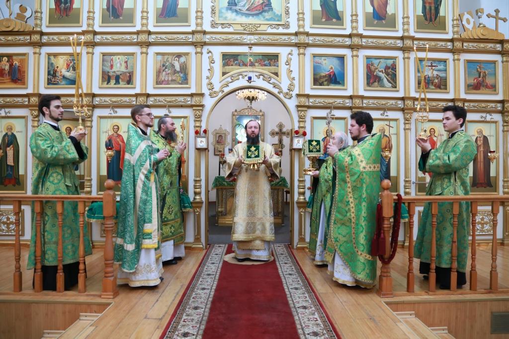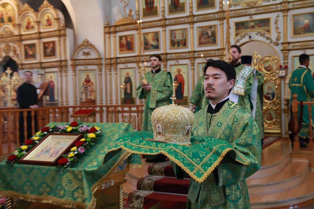 В воскресный день за праздничным богослужением молились насельники Свято-Троицкого мужского монастыря, сотрудники Усть-Каменогорского епархиального управления, преподаватели и воспитанники Центральной воскресной школы, многочисленные прихожане и паломники.