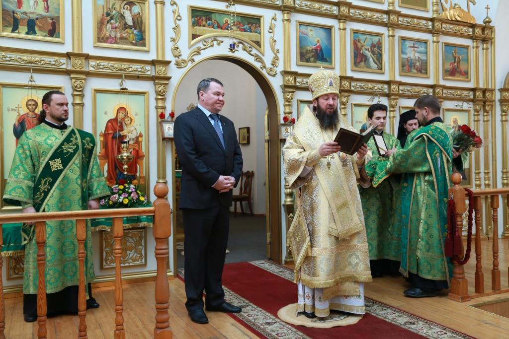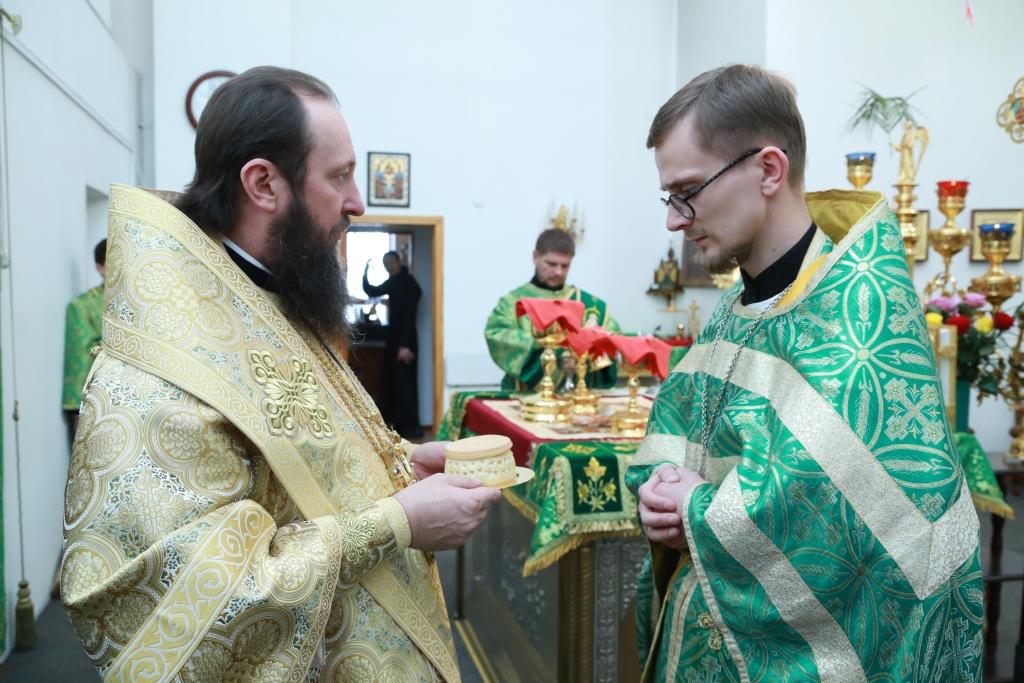 За богослужением епископ Амфилохий поздравил заведующего канцелярией епархиального управления священника Константина Дьякова с третьей годовщиной хиротонии в сан пресвитера.