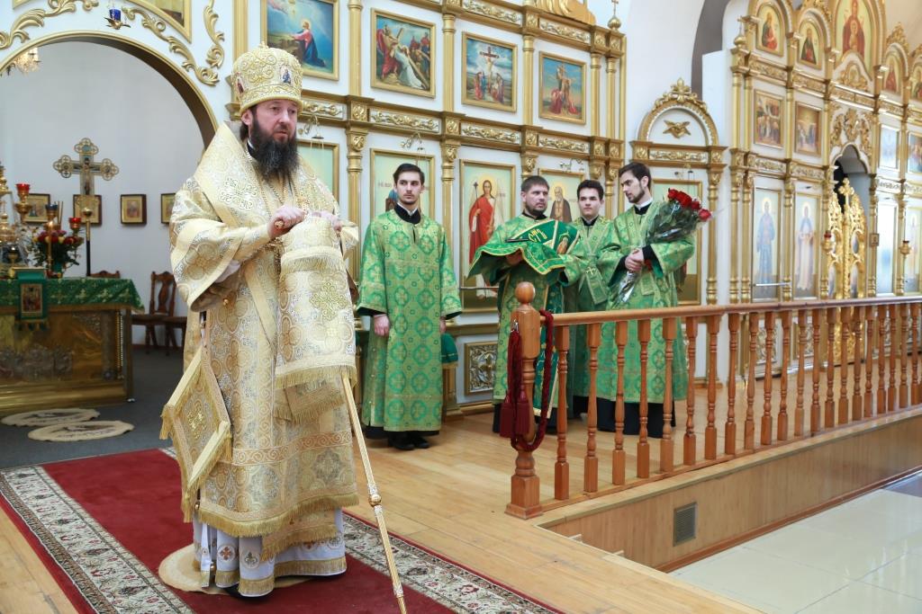 Управляющий Усть-Каменогорской и Семипалатинской епархией Преосвященный епископ Амфилохий совершил Божественную Литургию святителя Иоанна Златоуста в кафедральном соборе во имя святого апостола Андрея Первозванного города Усть-Каменогорска. Владыке епископу сослужили: духовник епархии архимандрит Спиридон (Теплухин), ключарь собора иеромонах Никодим (Авдеев), клирик кафедрального храма иерей Константин Дьяков, протодиаконы Георгий Засыпкин и Андрей Дудник, иеродиакон Мефодий (Шевчук), иеродиакон Тимофей (Хитрич).