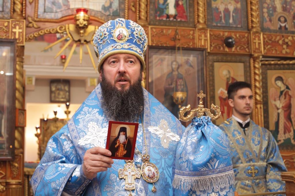 Божественная Литургия завершилась славлением Божией Матери, после которого епископ Амфилохий поздравил собравшихся с праздником и памятной годовщиной прихода, и обратился к народу Божию со словами Архипастырской проповеди.