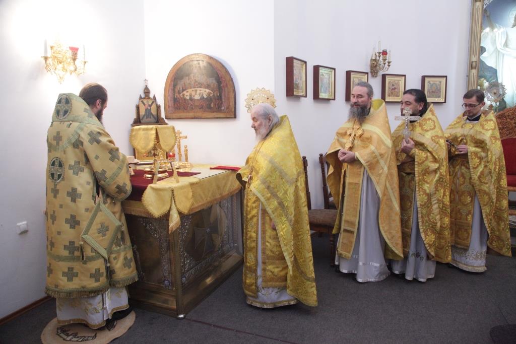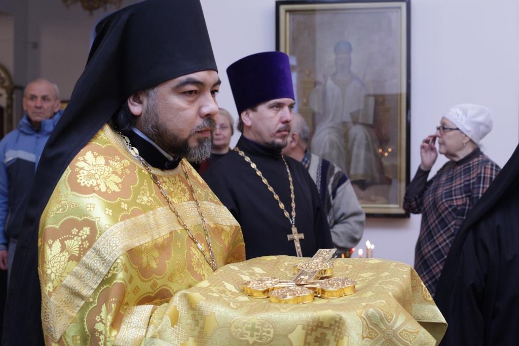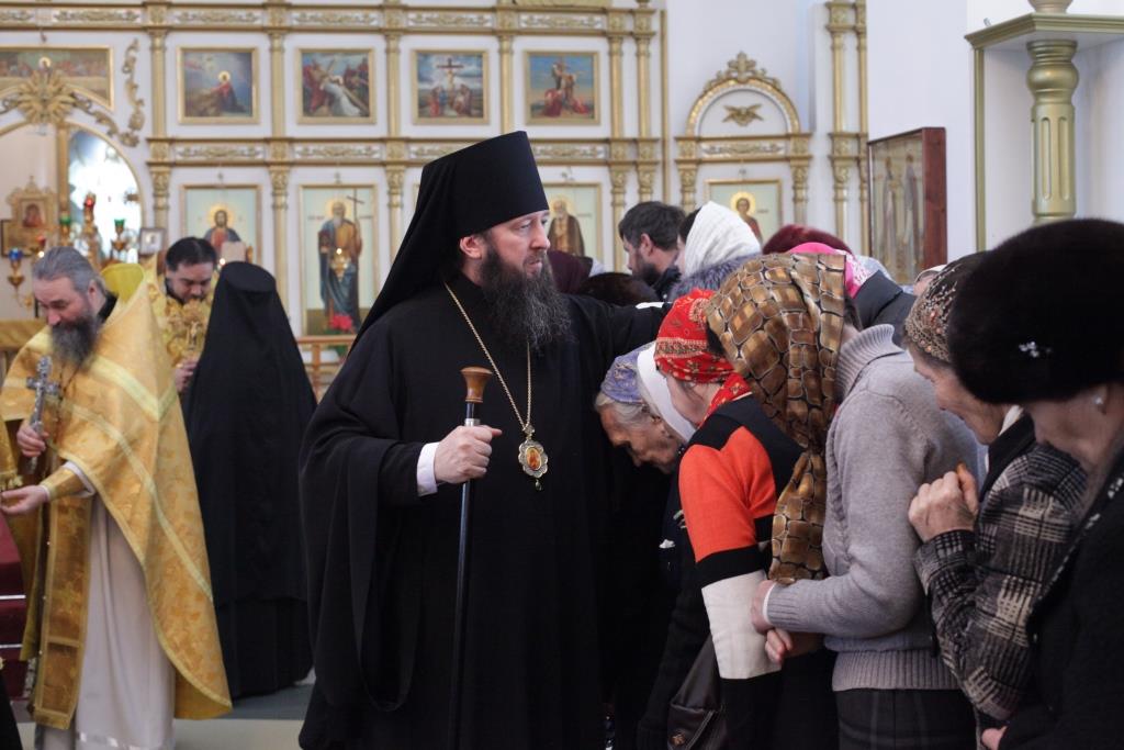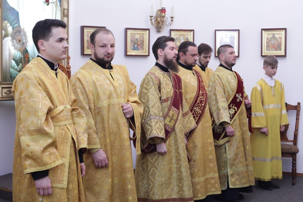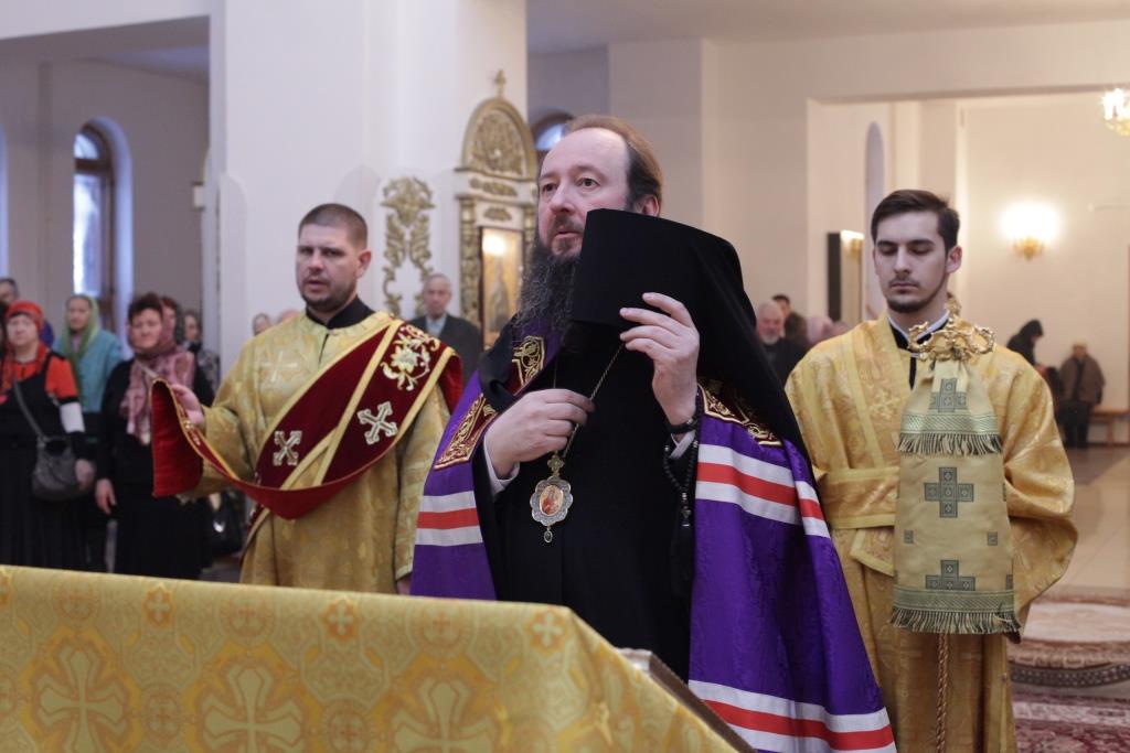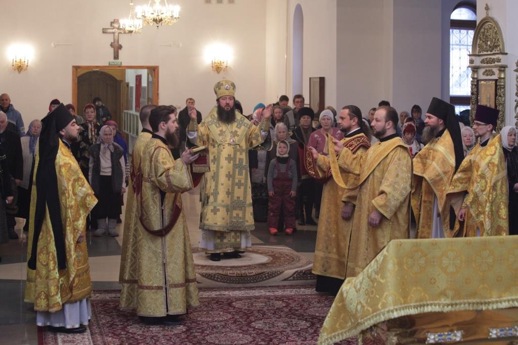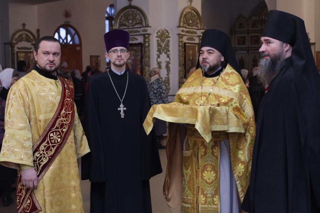 Его Преосвященству сослужили: духовник епархии архимандрит Спиридон (Теплухин), ключарь собора иеромонах Никодим (Авдеев), клирик храма иеромонах Севастиан (Андрющенко), заведующий канцелярией Усть-Каменогорского епархиального управления иерей Константин Дьяков; протодиаконы Георгий Засыпкин и Андрей Дудник, иеродиакон Мефодий (Шевчук), диакон Алексий Горбунов.