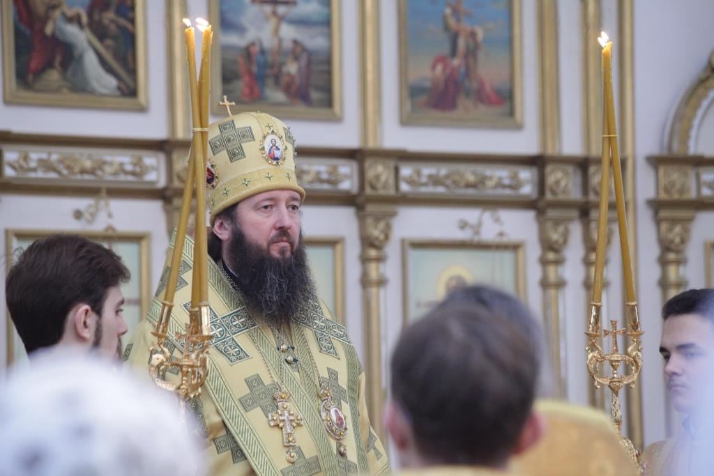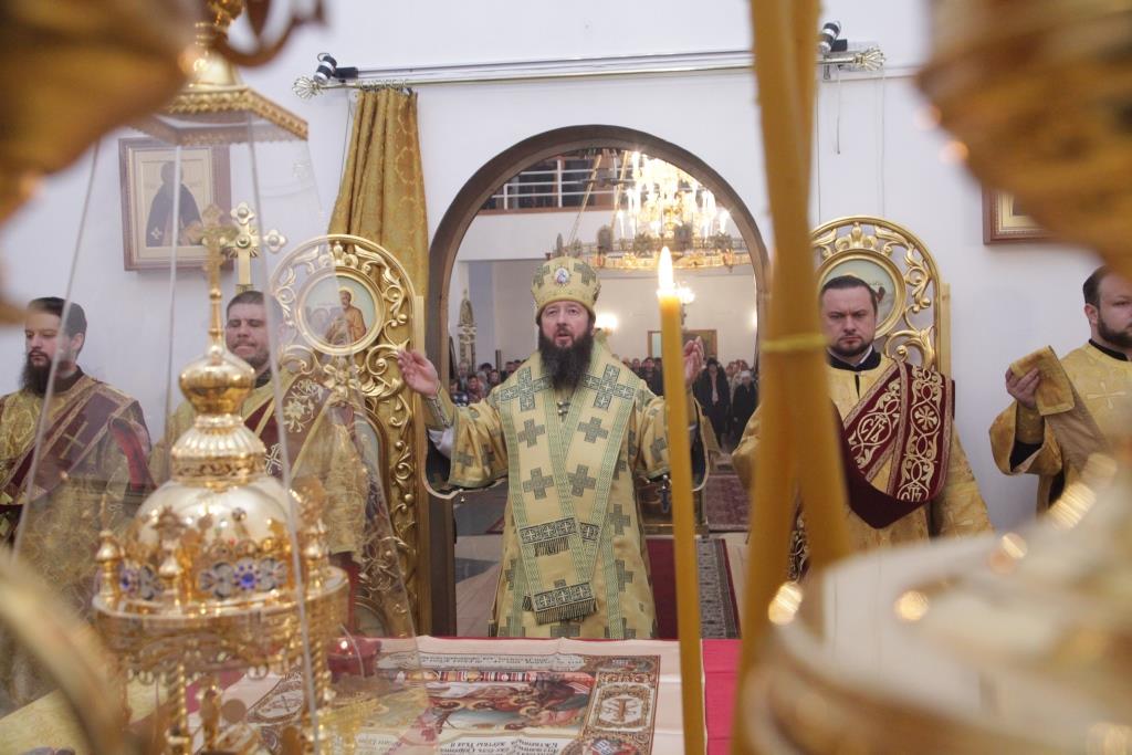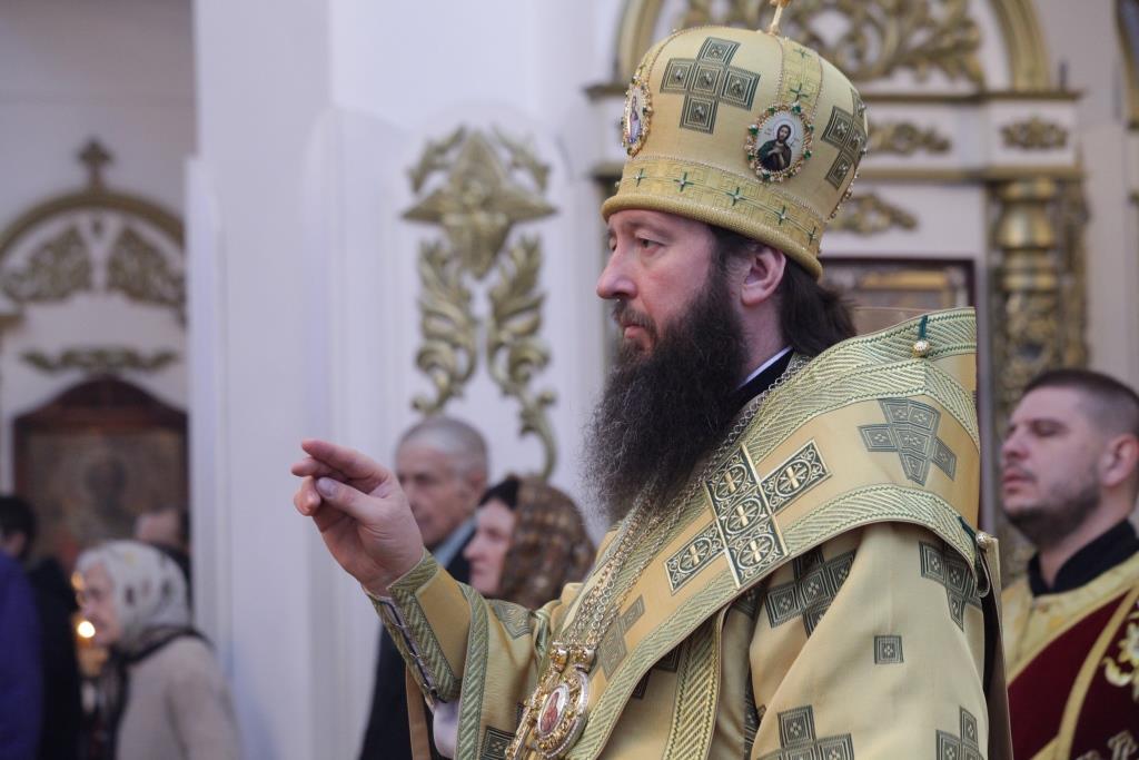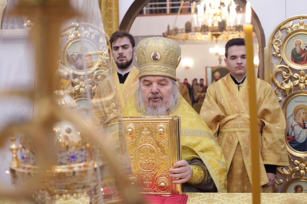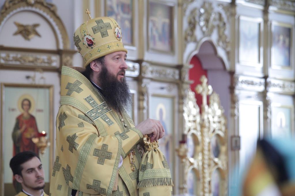 Божественная Литургия завершилась славлением святителю Спиридону Тримифунтскому, после чего Преосвященнейший Архипастырь обратился к верующим со словами поучения: