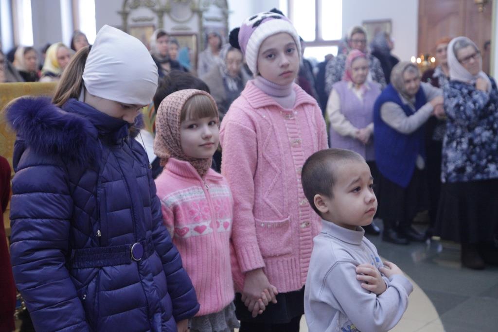 За воскресным богослужением молились насельники Свято-Троицкого мужского монастыря, сотрудники епархиального управления, преподаватели и воспитанники Центральной воскресной школы, прихожане и паломники главного храма Рудного Алтая.