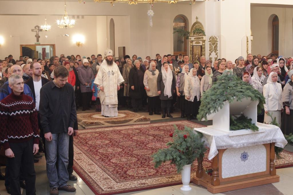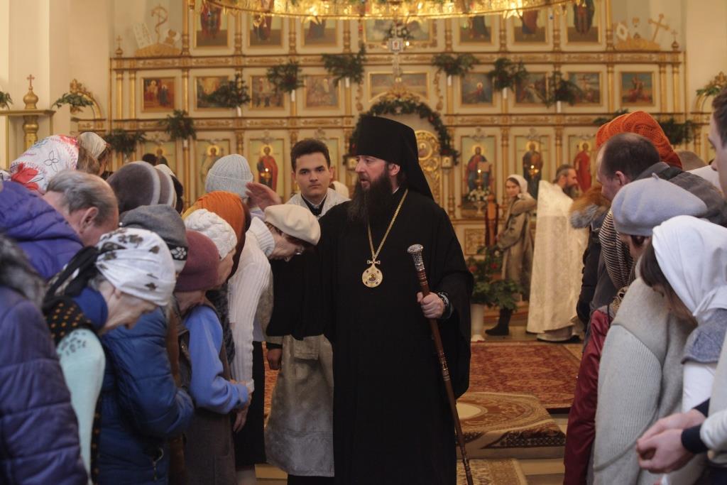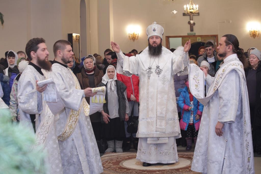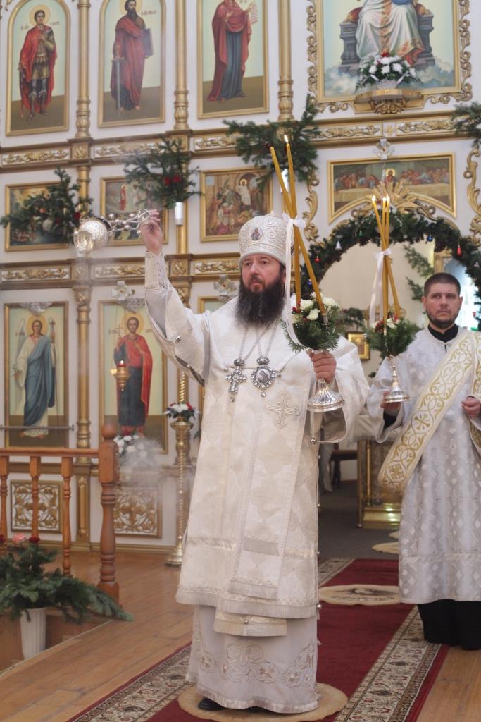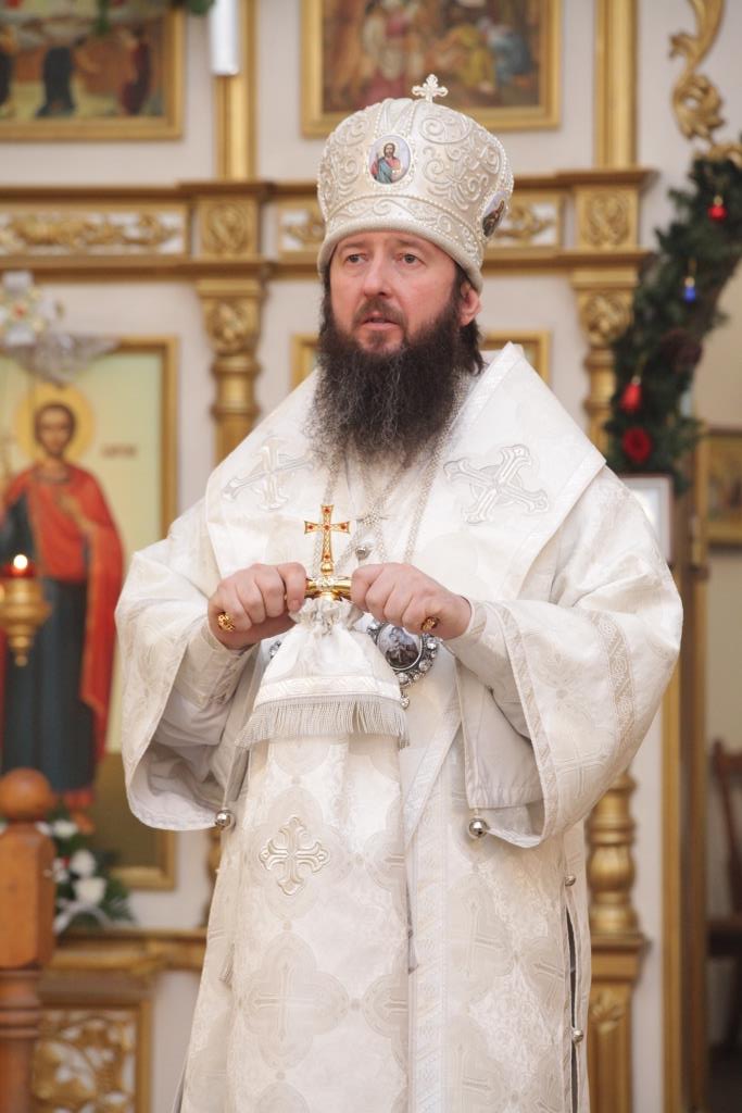 Литургия завершилась славлением Богомладенцу Еммануилу, после чего Преосвященный владыка обратился к верующим с проповедью: