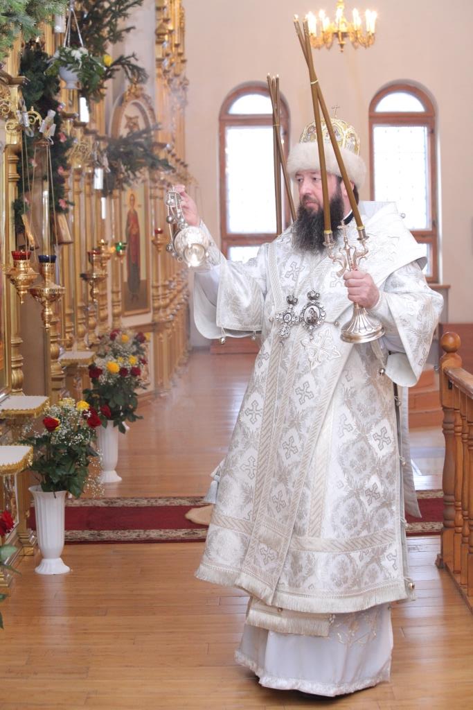 По окончании проповеди Преосвященнейший Владыка призвал на многочисленных прихожан Божие благословение и пожелал всем мира, спасения души и благодати Святого Духа.