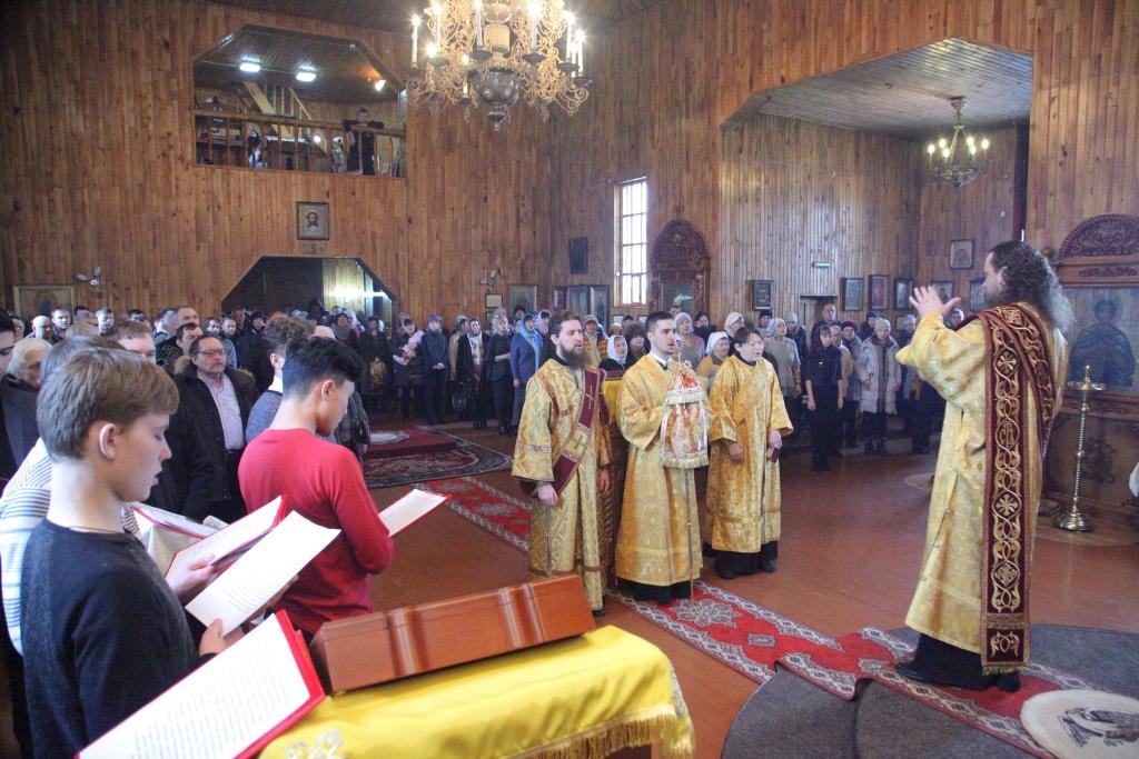 За воскресным богослужением молились прихожане Покровского храма, преподаватели и воспитанники приходской воскресной школы, паломники и городских храмов и окрестных населенных пунктов.