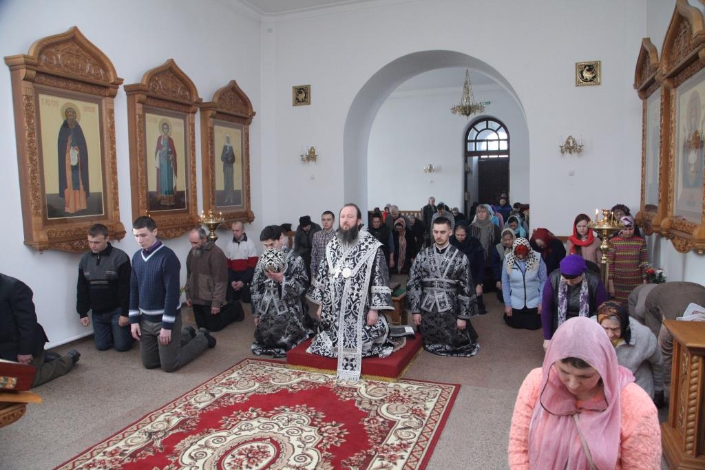 За великопостным богослужением молились насельники Свято-Троицкого мужского монастыря, сотрудники епархиального управления, прихожане и паломники.