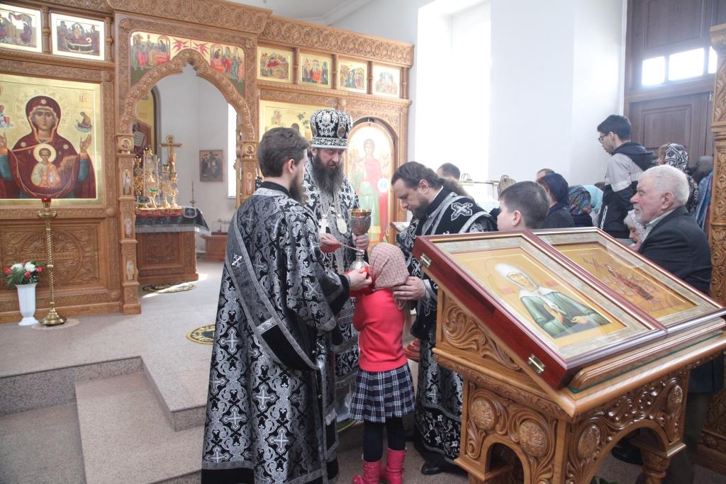 Преосвященнейший епископ Усть-Каменогорский и Семипалатинский Амфилохий совершил Божественную Литургию Преждеосвященных Даров святителя Григория Двоеслова в храме во имя Святой Троицы города на Иртыше. Владыке сослужили: духовник епархии архимандрит Спиридон (Теплухин), игумен Аникита (Макаров), ключарь Свято-Андреевского кафедрального собора иеромонах Никодим (Авдеев), клирик Знаменско-Петропавловского женского монастыря города Семипалатинска иеромонах Мануил (Чабанов), иеромонах Евгений (Щеглов), протодиакон Андрей Дудник, иеродиакон Мефодий (Шевчук), диакон Алексий Горбунов.