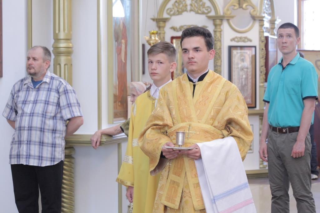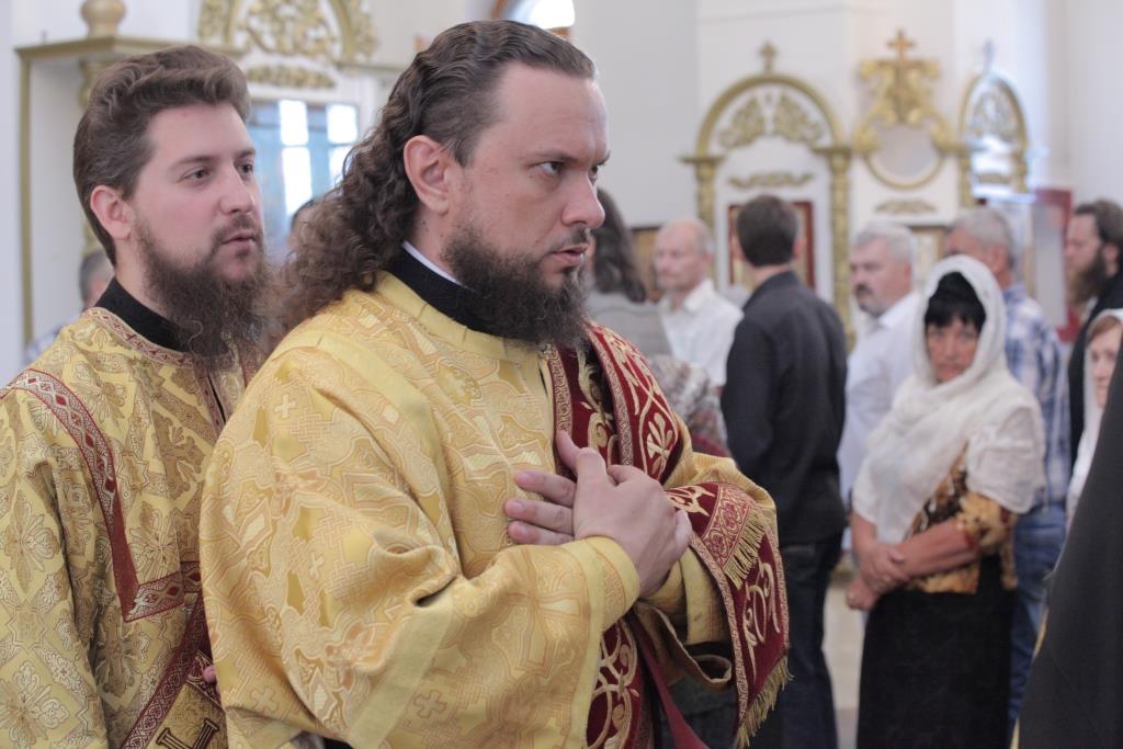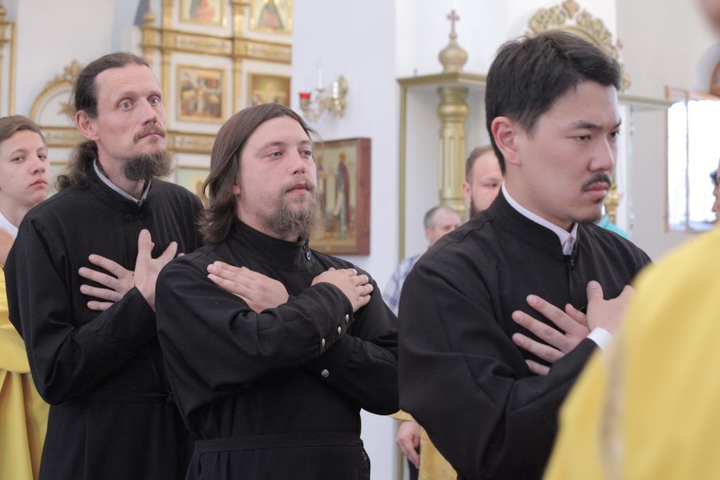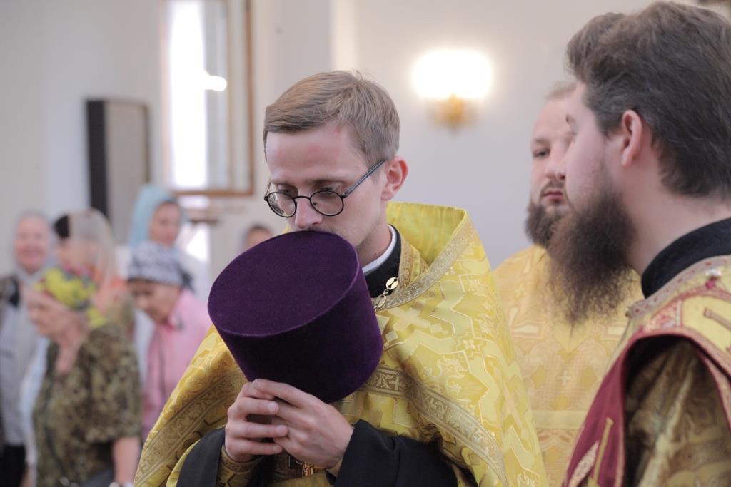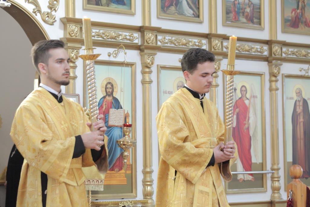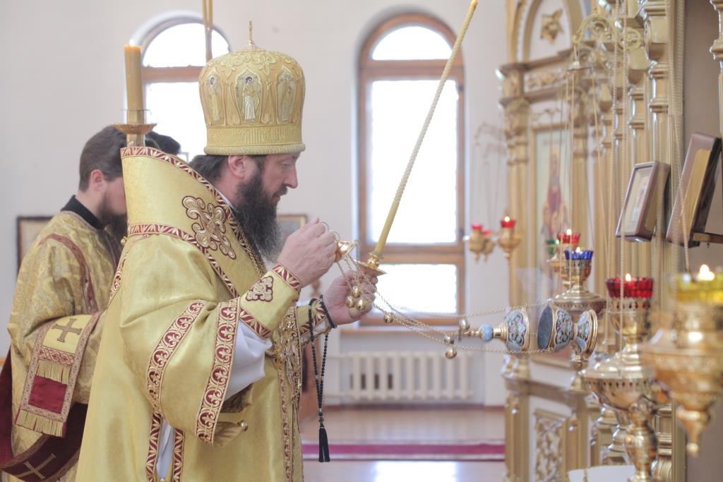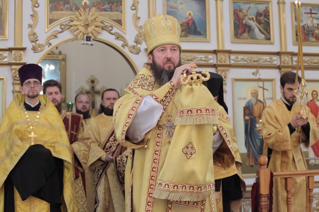 Архипастырю сослужили: ключарь собора иеромонах Никодим (Авдеев), заведующий канцелярией епархии иерей Константин Дьяков, протодиакон Андрей Дудник, иеродиакон Мефодий (Шевчук), диакон Алексий Горбунов.