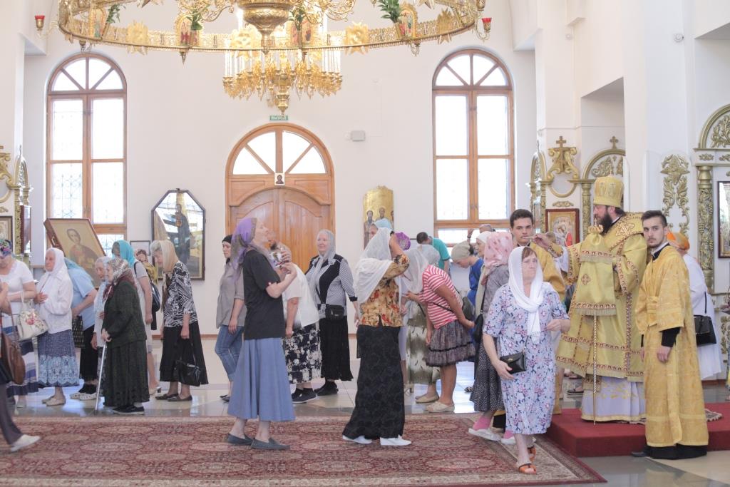 Песнопения праздника исполнял хор кафедрального собора под управлением регента А. Мельникова. За Богослужением молились насельники Свято-Троицкого мужского монастыря, сотрудники епархиального управления, прихожане кафедрального собора. После чтения евангельского зачала епископ Амфилохий помазал духовенство и прихожан освященным елеем.