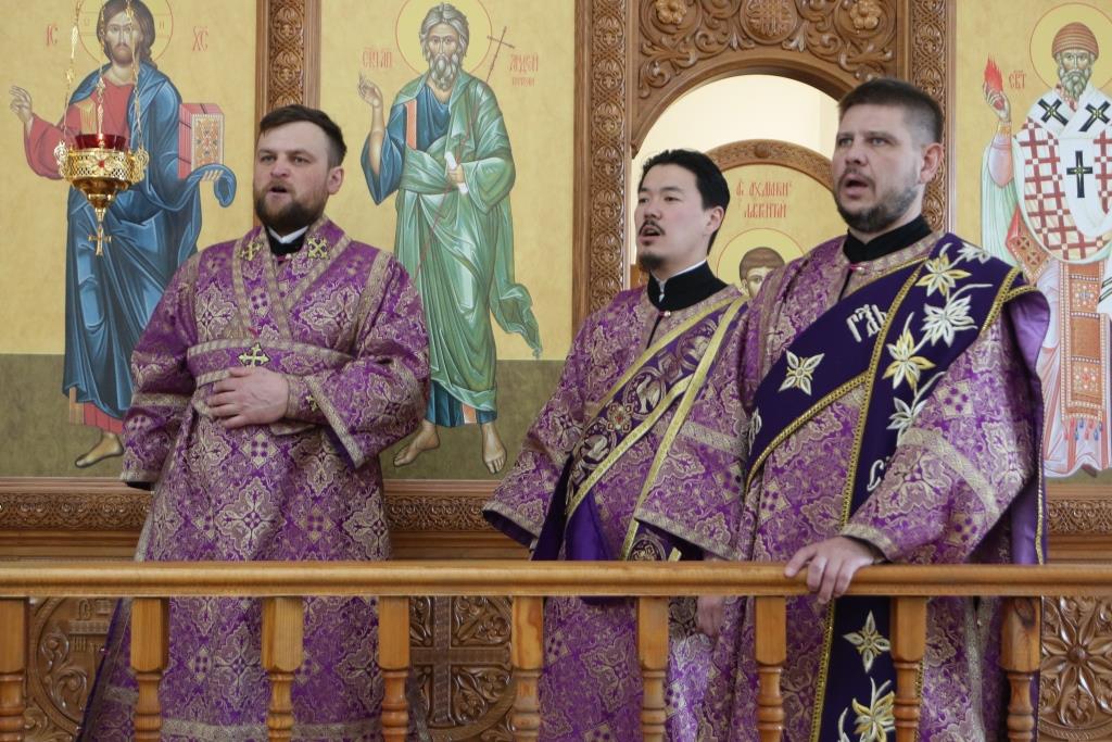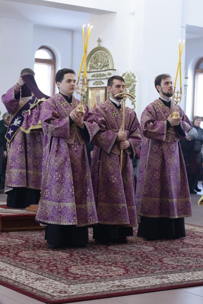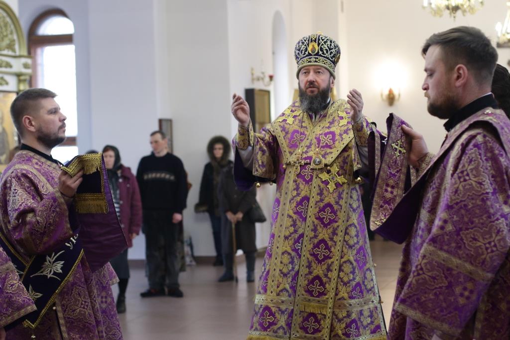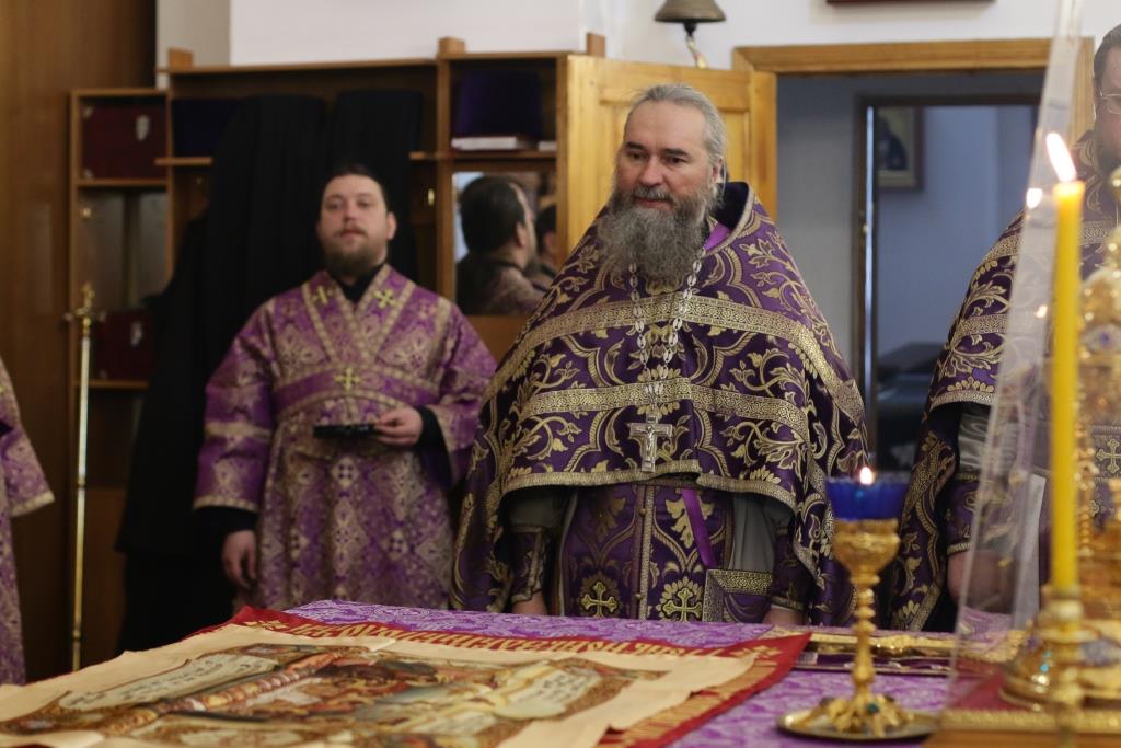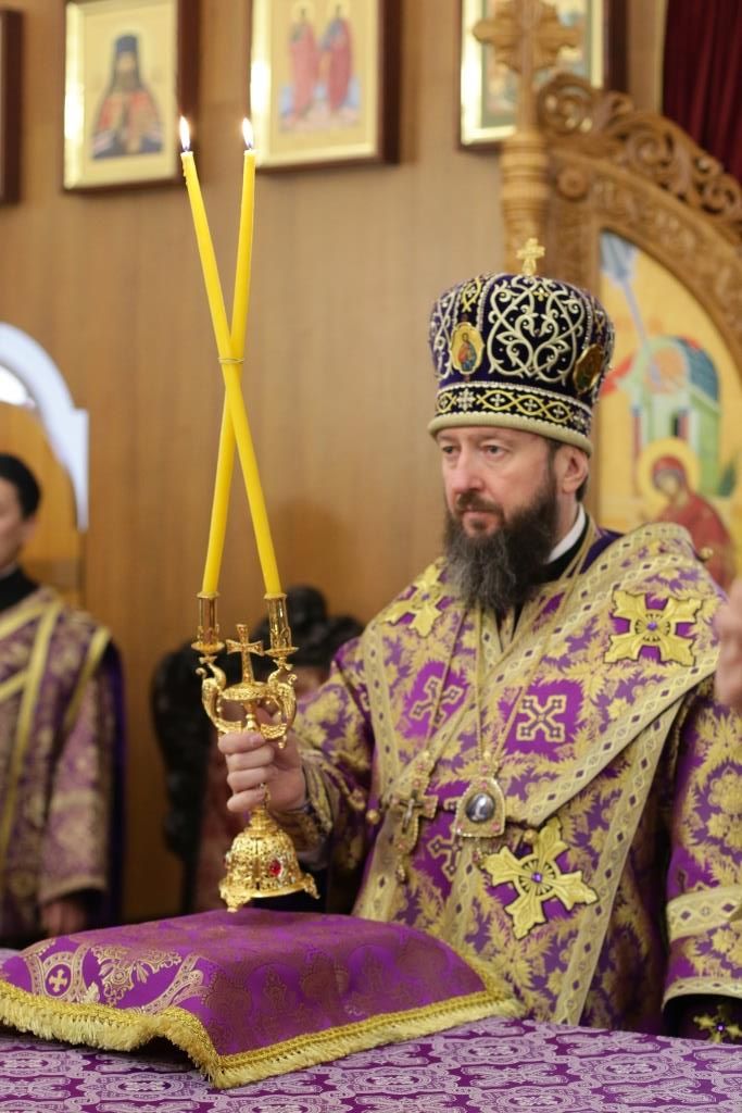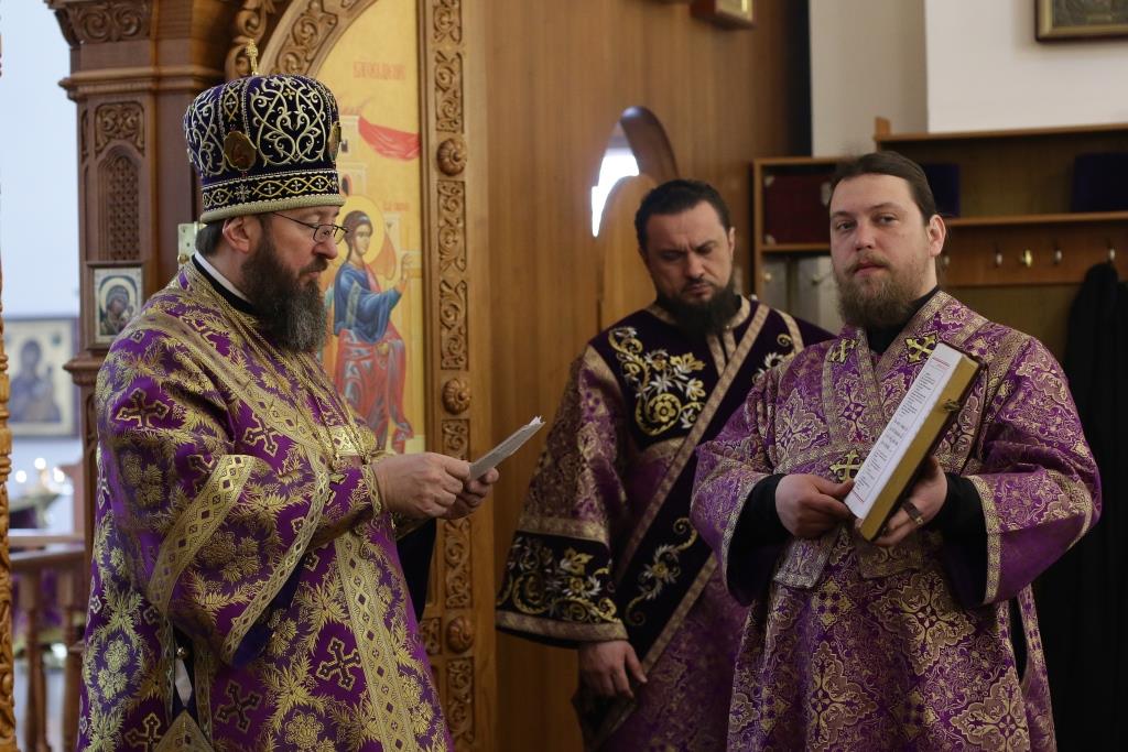 Владыке епископу сослужили: духовник епархии архимандрит Спиридон (Теплухин), ключарь кафедрального собора иеромонах Никодим (Авдеев), клирик собора иеромонах Силуан (Магилев); иеромонах Назарий (Шелыгин), секретарь епархии диакон Илия Кван, протодиаконы Георгий Засыпкин и Андрей Дудник, диакон Виталий Екидин.
