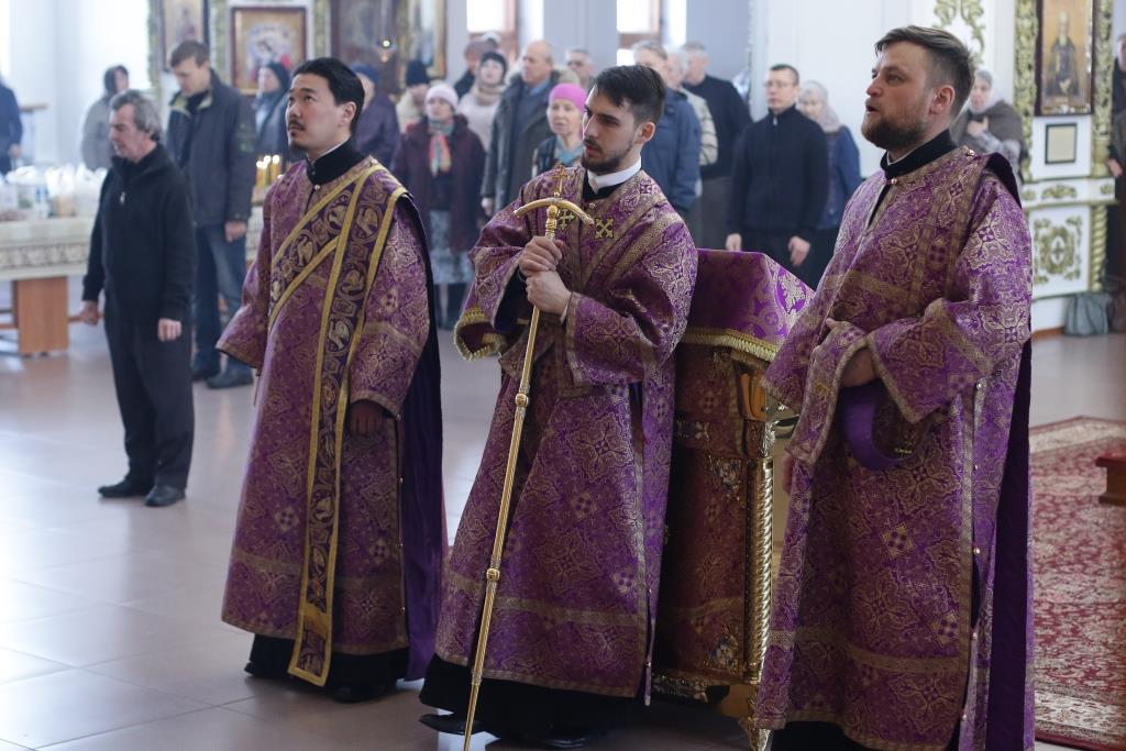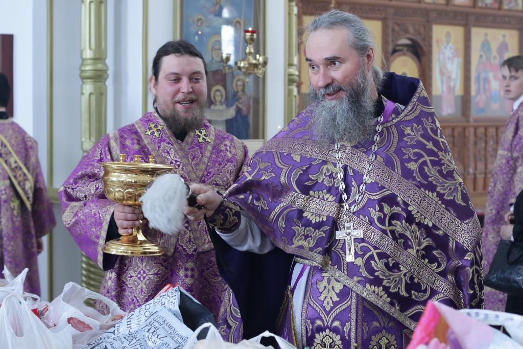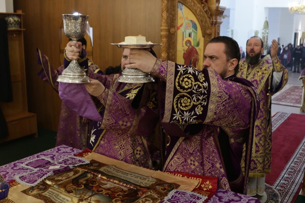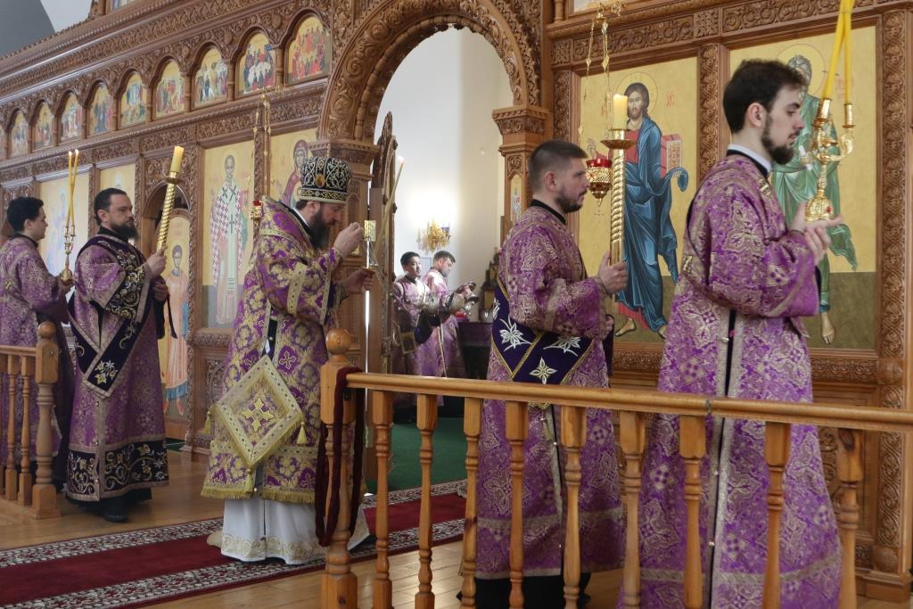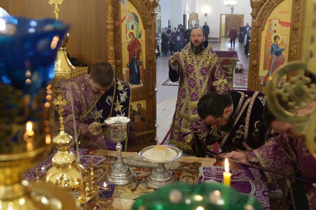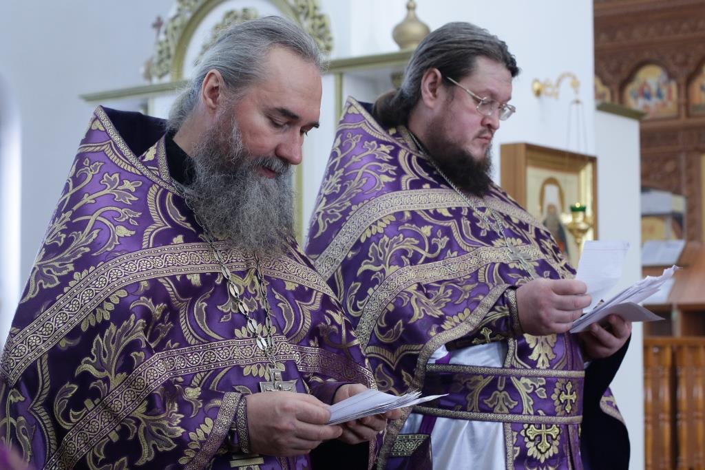 Владыке епископу сослужили: духовник епархии архимандрит Спиридон (Теплухин), ключарь кафедрального собора иеромонах Никодим (Авдеев), клирик собора иеромонах Силуан (Магилев); иеромонах Назарий (Шелыгин), секретарь епархии диакон Илия Кван, протодиаконы Георгий Засыпкин и Андрей Дудник, диакон Виталий Екидин.