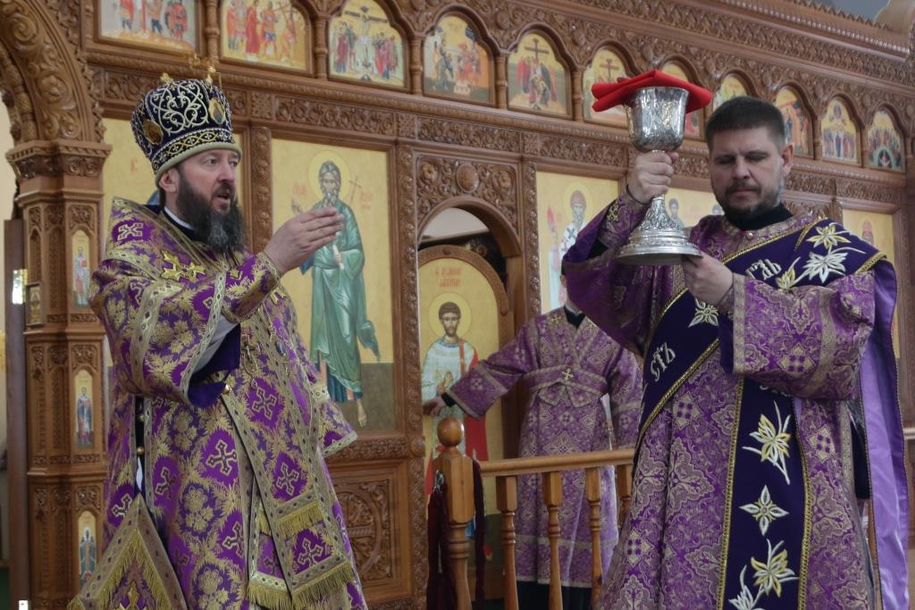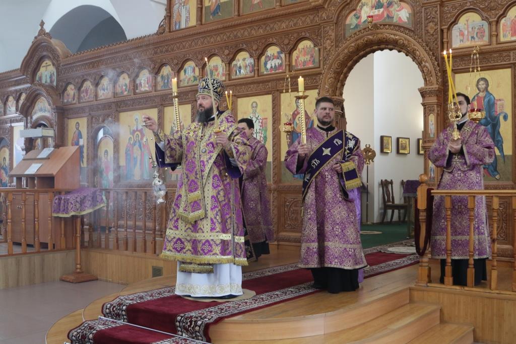 В субботний день Управляющий Усть-Каменогорской и Семипалатинской епархией Преосвященнейший епископ Амфилохий совершил Божественную Литургию святителя Иоанна Златоуста в Андреевском кафедральном соборе Усть-Каменогорска.