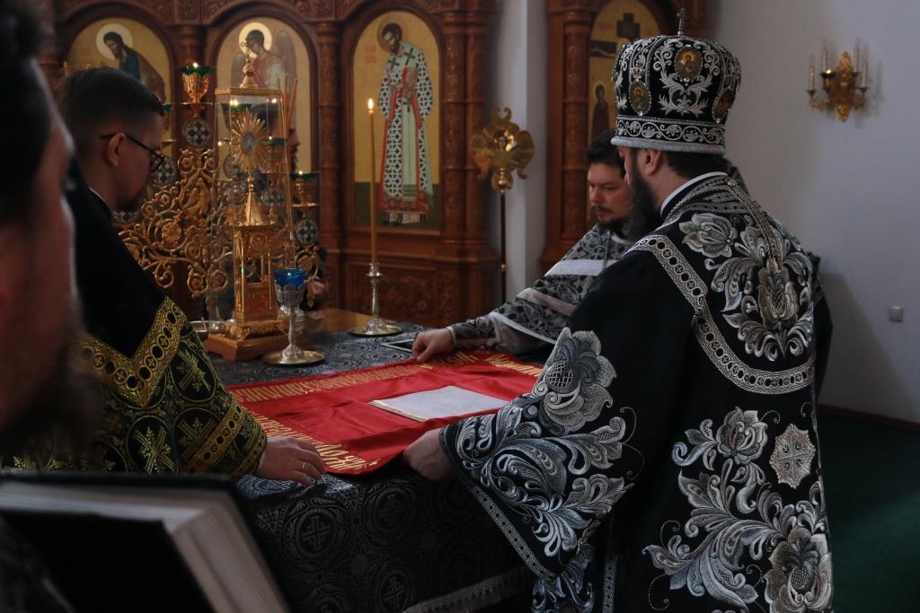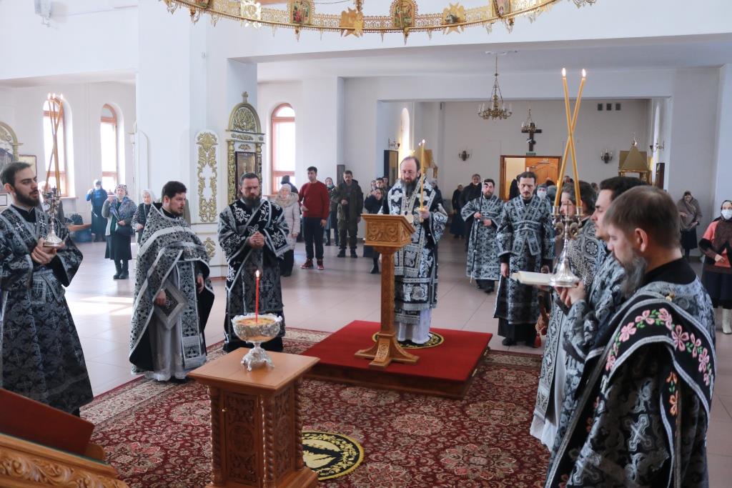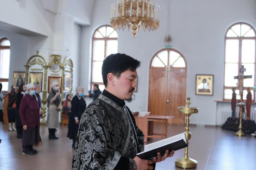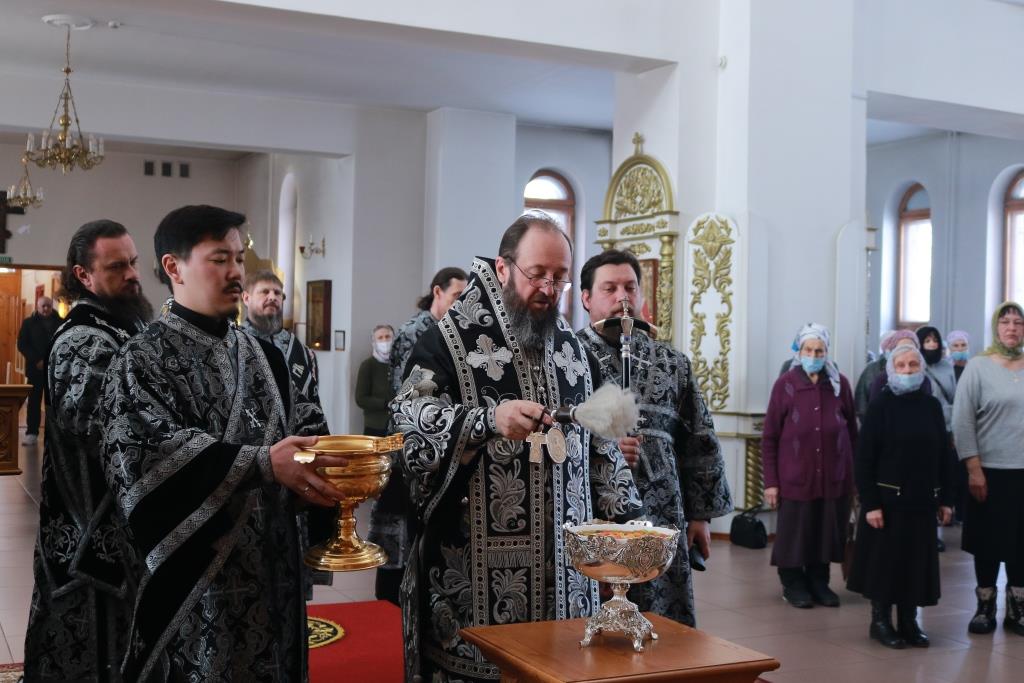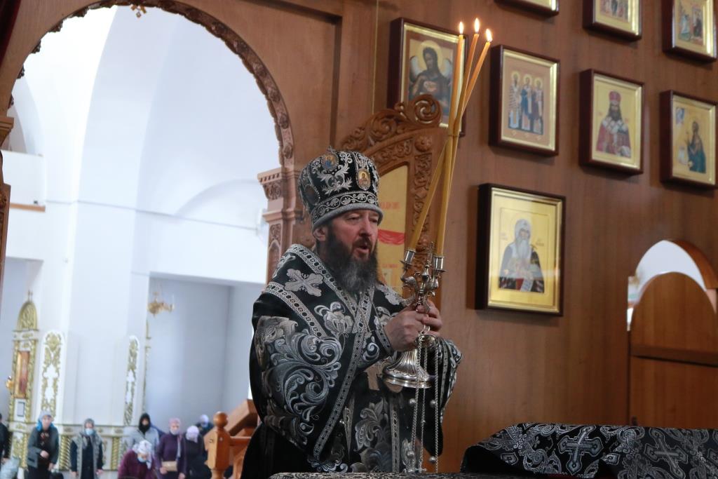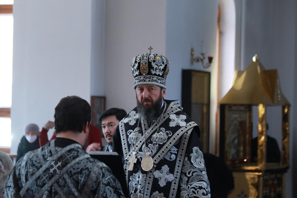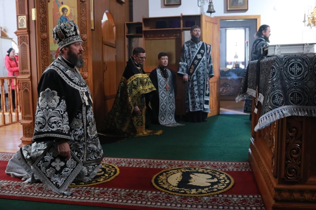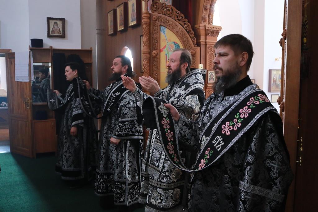 В пятницу первой седмицы Святой Четыредесятницы Преосвященнейший епископ Амфилохий возглавил служение Литургии Преждеосвященных Даров святителя Григория Двоеслова в главном храме Восточного Казахстана – Андреевском кафедральном соборе. Владыке епископу сослужили клирики собора иеромонах Силуан (Магилев), иерей Константин Дьяков, иеромонах Мефодий (Шевчук), секретарь епархии диакон Илия Кван, протодиаконы Андрей Дудник и Георгий Засыпкин. Песнопения Божественной Литургии исполнял хор под управлением регента Н. Романцовой.