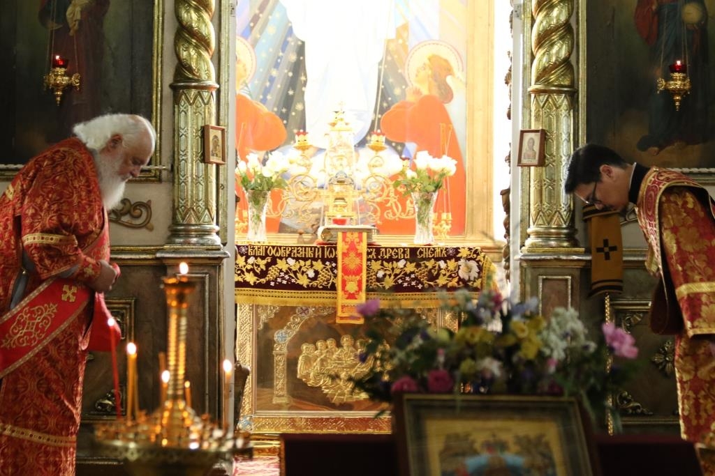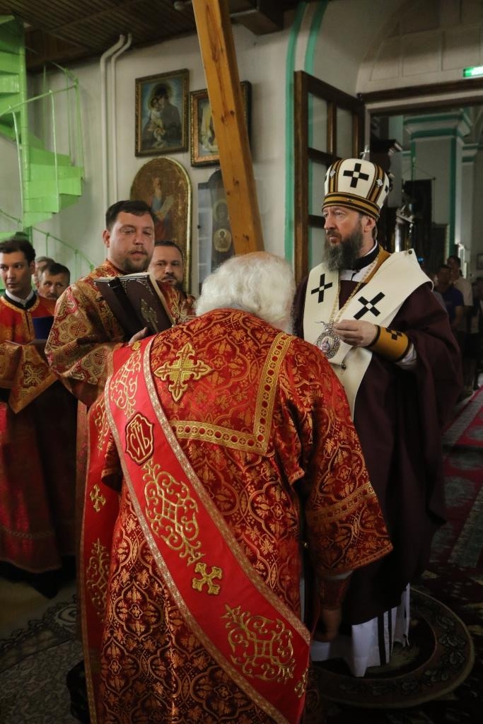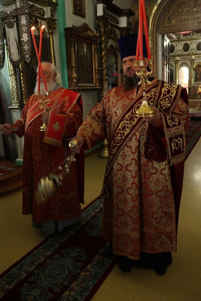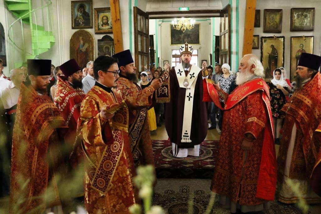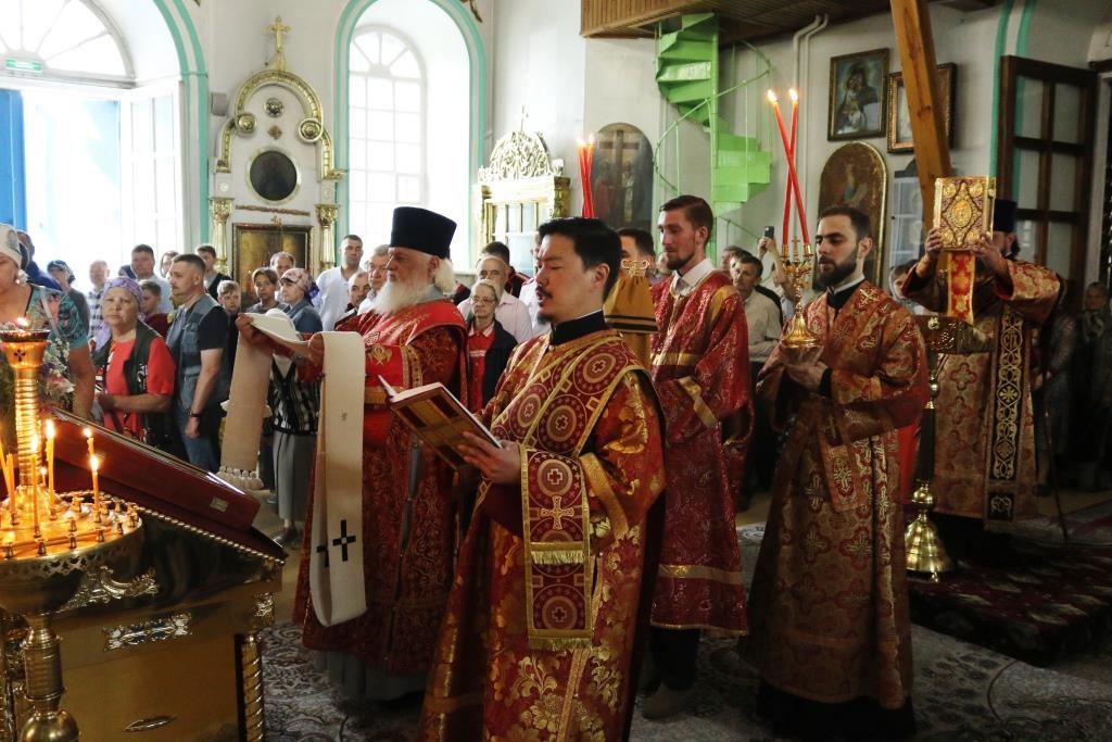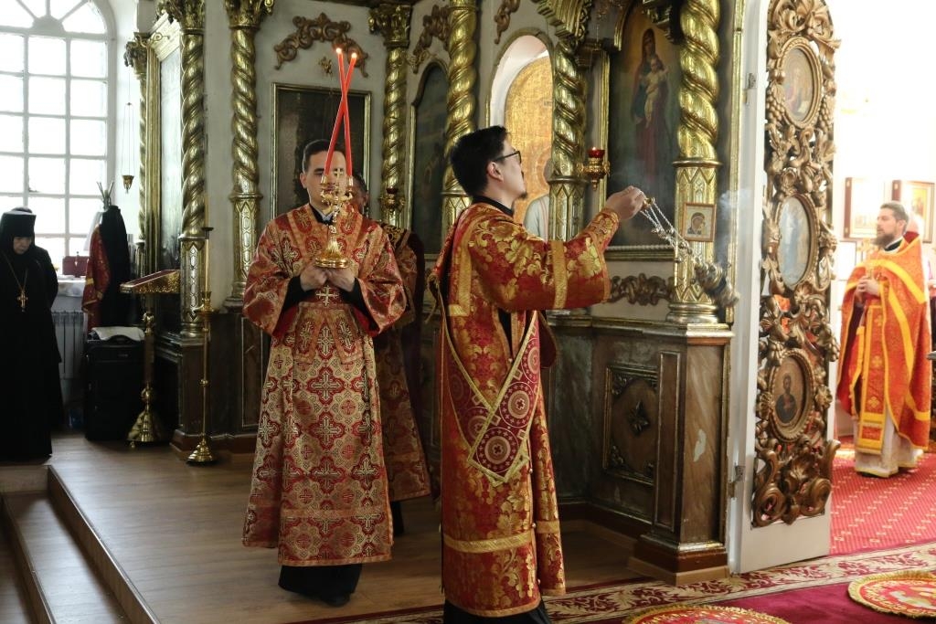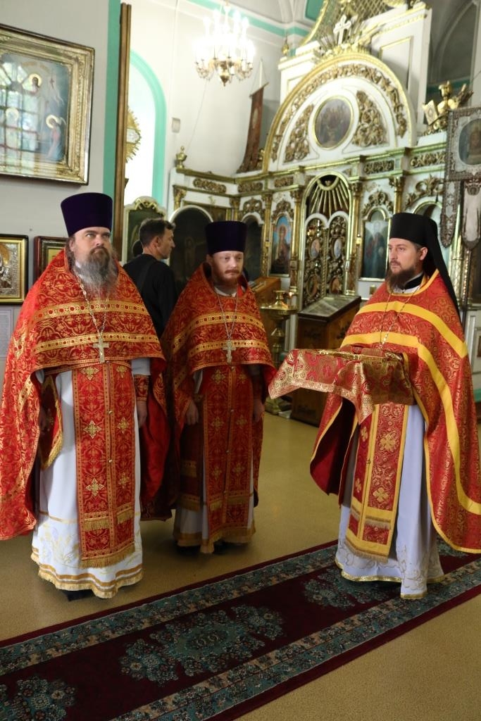 Владыке Амфилохию сослужили: благочинный Семипалатинского церковного округа, настоятель Воскресенского собора иерей Вячеслав Гутов, клирики храма протоиерей Александр Юркин и иерей Евгений Хохряков, клирик Андреевского кафедрального собора иеромонах Мефодий (Шевчук), секретарь епархии диакон Илия Кван, протодиакон Андрей Дудник, диакон Николай Белоконь.