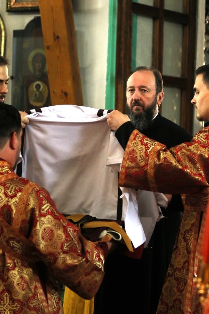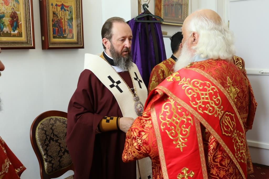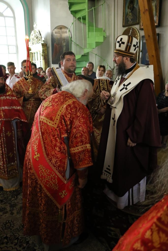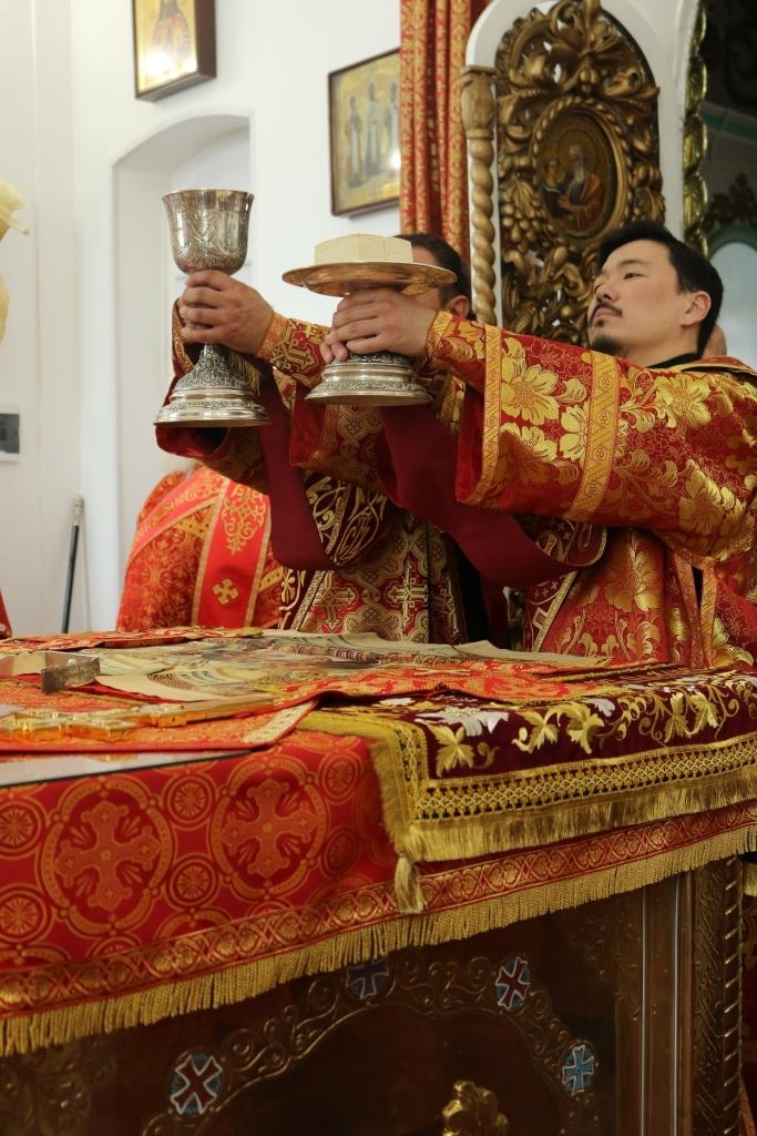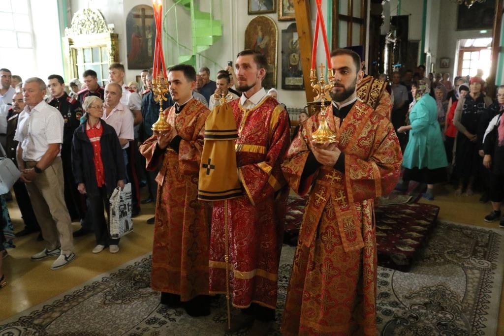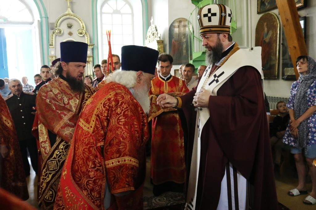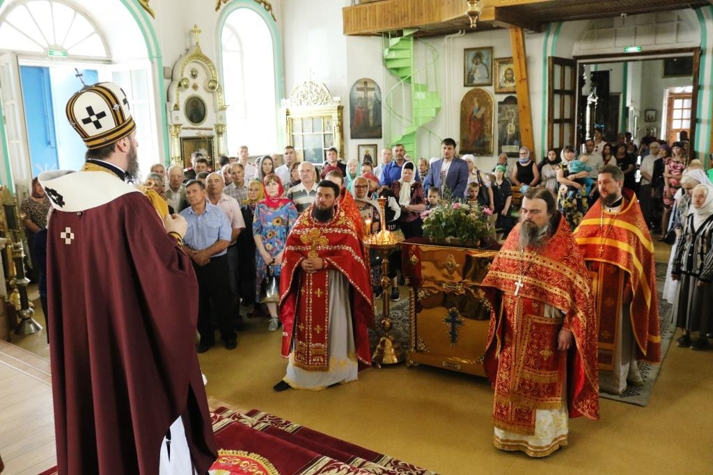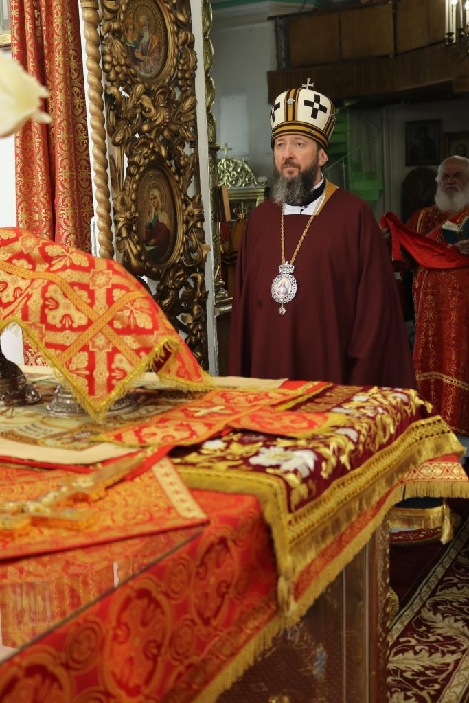 Владыке Амфилохию сослужили: благочинный Семипалатинского церковного округа, настоятель Воскресенского собора иерей Вячеслав Гутов, клирики храма протоиерей Александр Юркин и иерей Евгений Хохряков, клирик Андреевского кафедрального собора иеромонах Мефодий (Шевчук), секретарь епархии диакон Илия Кван, протодиакон Андрей Дудник, диакон Николай Белоконь.