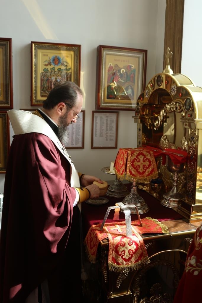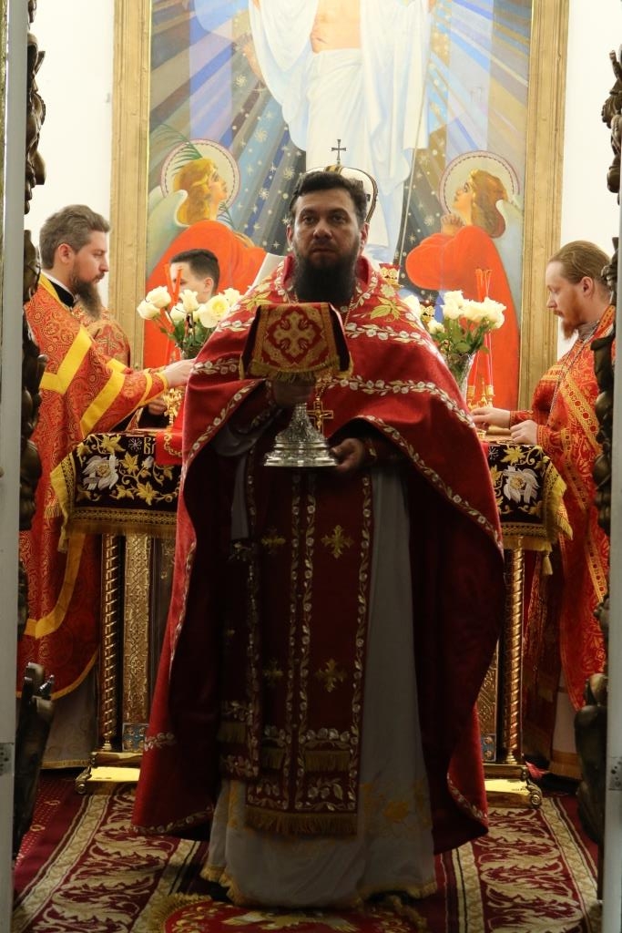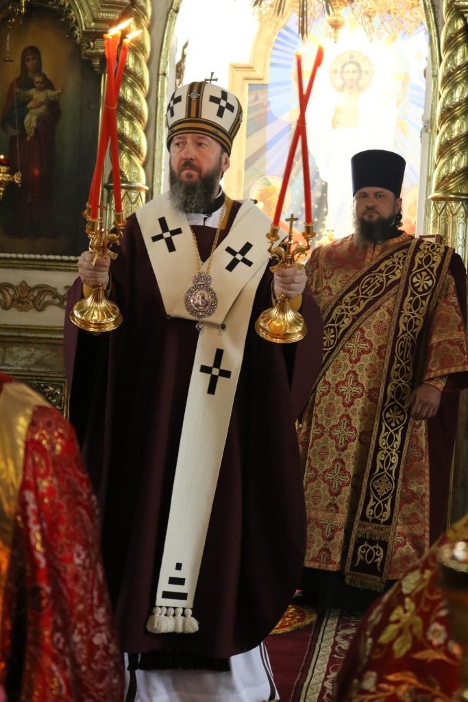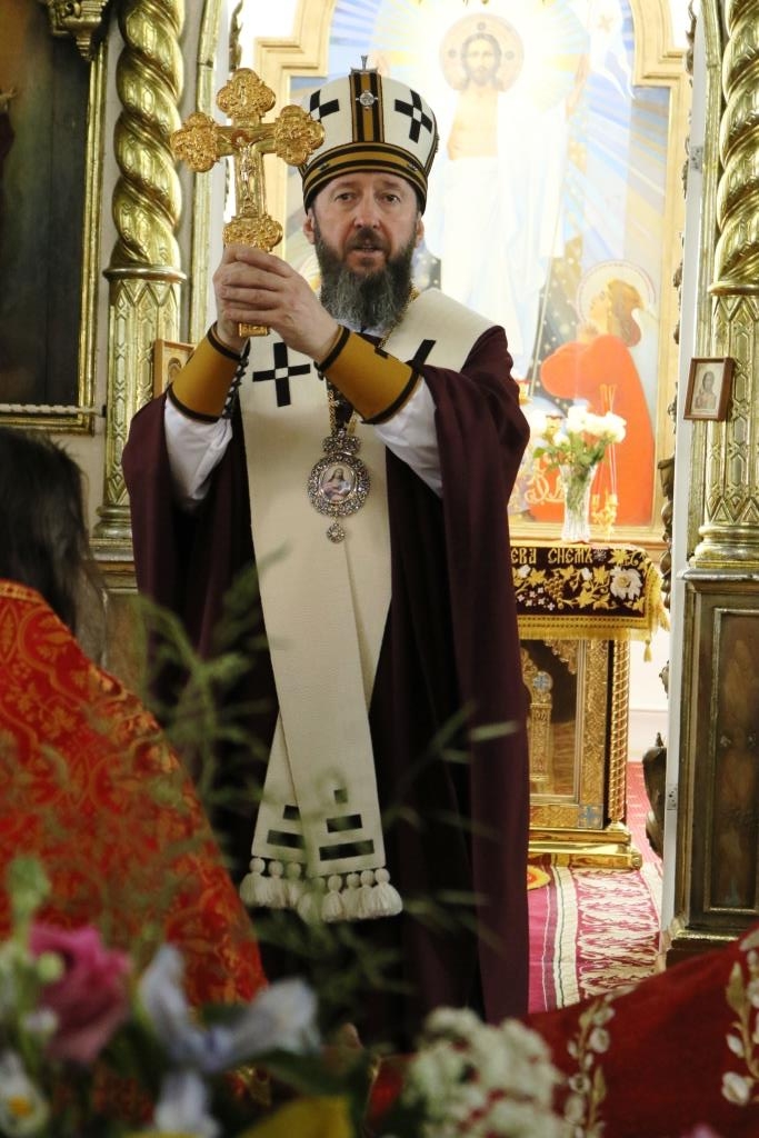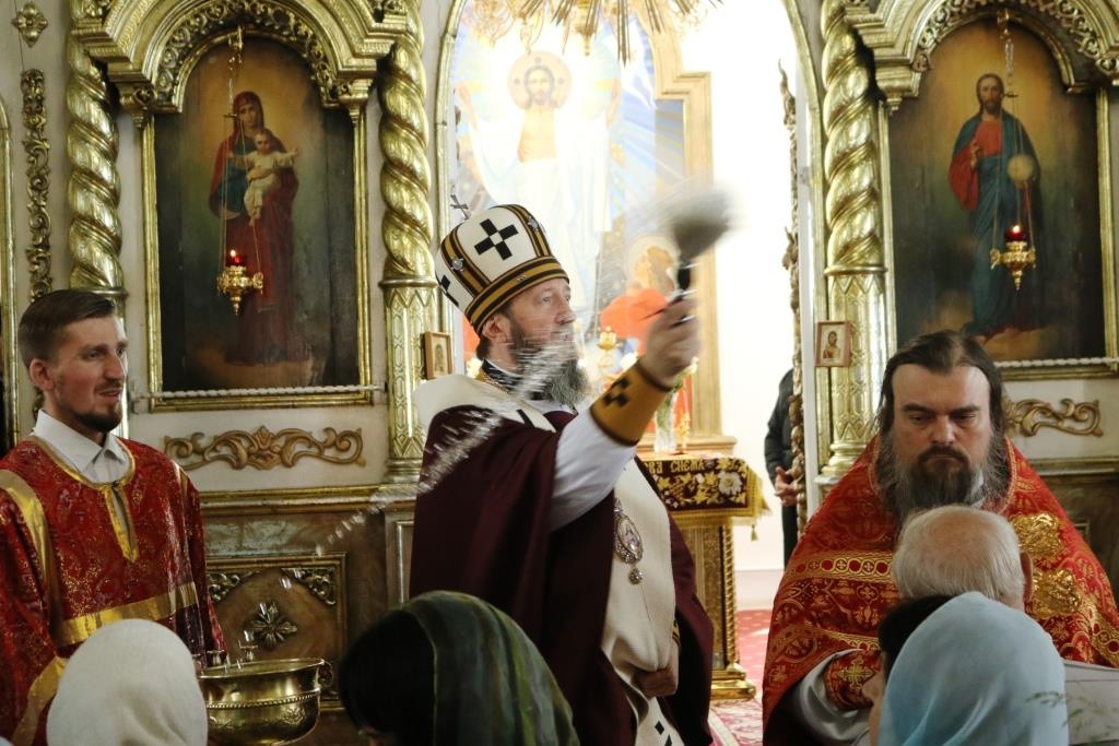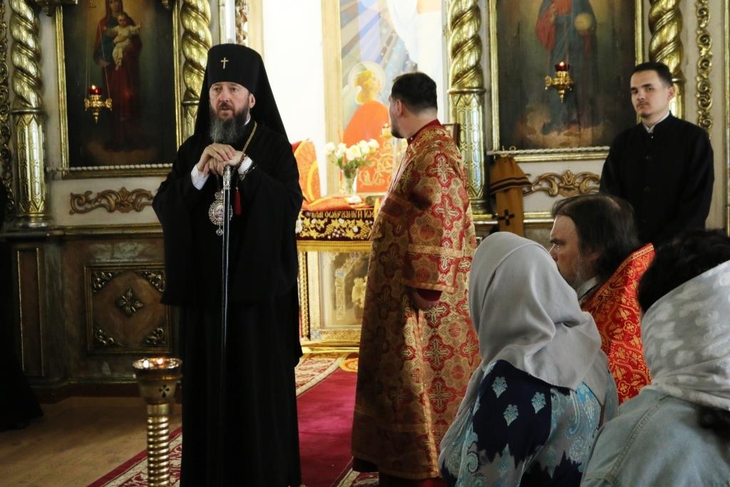Перед причастием мирян проповедовал иерей Вячеслав Гутов. После заамвонной молитвы было совершено славление Христу Спасителю. В завершение Архипастырского богослужения владыка Амфилохий поздравил духовенство и молящихся с праздником Пасхи Господней и обратился к богомольцам со словами поучения.