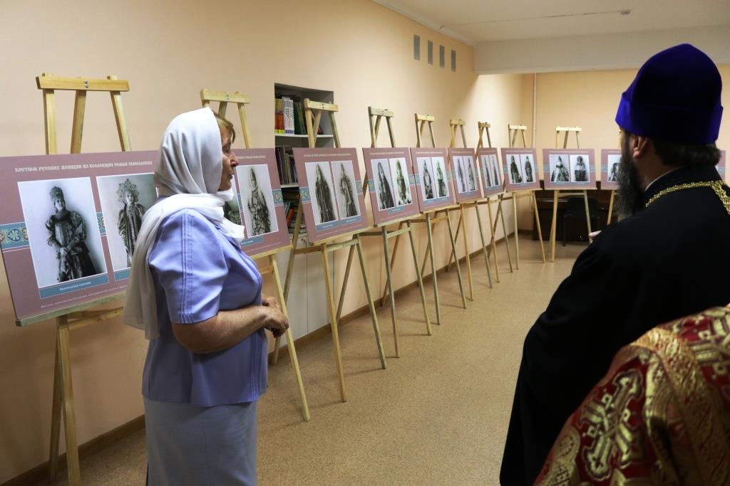После окончания Божественной Литургии Высокопреосвященнейший Владыка посетил организованную при Воскресенском соборе художественную выставку «Русские красавицы», посвящённую традиционным русским женским костюмам. Выставка была подготовлена Российским этнографическим музеем при поддержке Представительства Россотрудничества в Республике Казахстан.