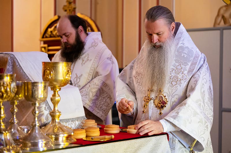 Литургия завершилась славлением перед иконой Вознесения Господня и образом Пресвятой Богородицы «Одигитрия-Полонская».