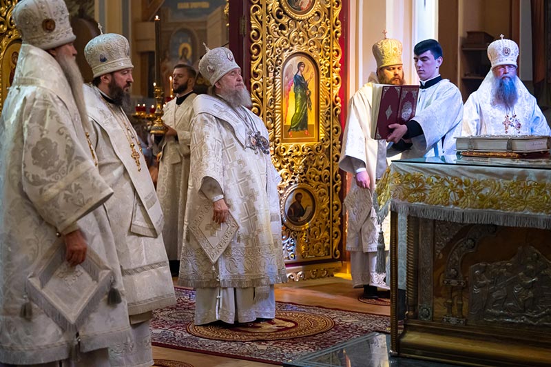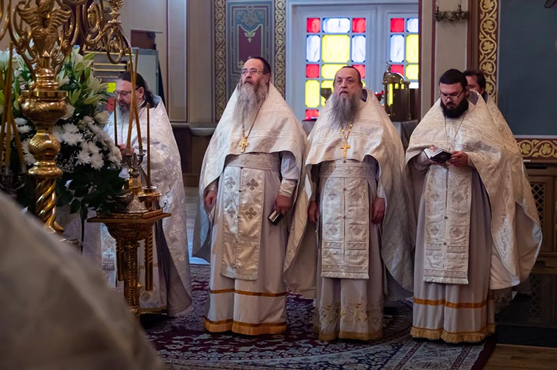 Предстоятелю Православной Церкви Казахстана сослужили: архиепископ Усть-Каменогорский и Семипалатинский Амфилохий, викарий Вятской епархии епископ Оричевский Даниил, епископ Актюбинский и Кызылординский Игнатий, викарий Астанайской епархии епископ Талдыкорганский Клавдиан; благочинный храмов Алма-Аты, настоятель Никольского собора протоиерей Валерий Захаров; благочинный Астанайского церковного округа архимандрит Сергий (Карамышев), настоятель алма-атинского храма в честь иконы Божией Матери «Всех скорбящих Радость» протоиерей Евгений Воробьев, духовник Алма-Атинской епархии архимандрит Иоанн (Сазонов), ключарь Вознесенского кафедрального собора, руководитель отдела Митрополичьего округа по связям с общественностью протоиерей Александр Суворов, ключарь храма Христа Спасителя города Южной столицы протоиерей Александр Гайченя, член Патриаршей комиссии по вопросам физической культуры и спорта игумен Филипп (Моисеев), иеромонах Викторин (Асеев), ключарь Петропавловского храма протоиерей Кирилл Шкляр, иеромонах Димитрий (Першин), руководитель личного секретариата митрополита иеромонах Прохор (Ендовицкий), руководитель административного секретариата Главы Митрополичьего округа иерей Георгий Сидоров, иерей Иоанн Коноплев; протодиакон Николай Гринкевич, руководитель службы протокола митрополита протодиакон Роман Головин, протодиакон Владимир Сыровацкий, секретарь Усть-Каменогорской епархии диакон Илия Кван; клирик Никольского собора Алма-Аты иеродиакон Афанасий (Козел), диакон Георгий Рублинский, диакон Виталий Быструшкин, иеродиакон Софония (Мазуренко).