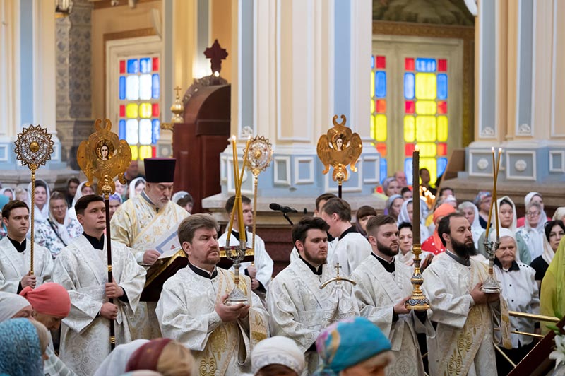 Песнопения исполнял хор Митрополичьего округа (регент – Заслуженный деятель искусств России О.Н. Овчинников, хормейстер – В. Дударева).