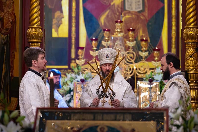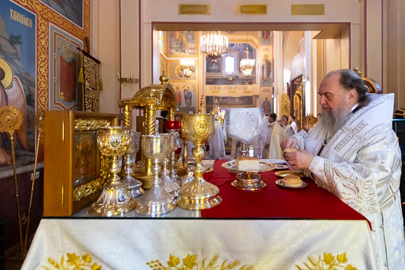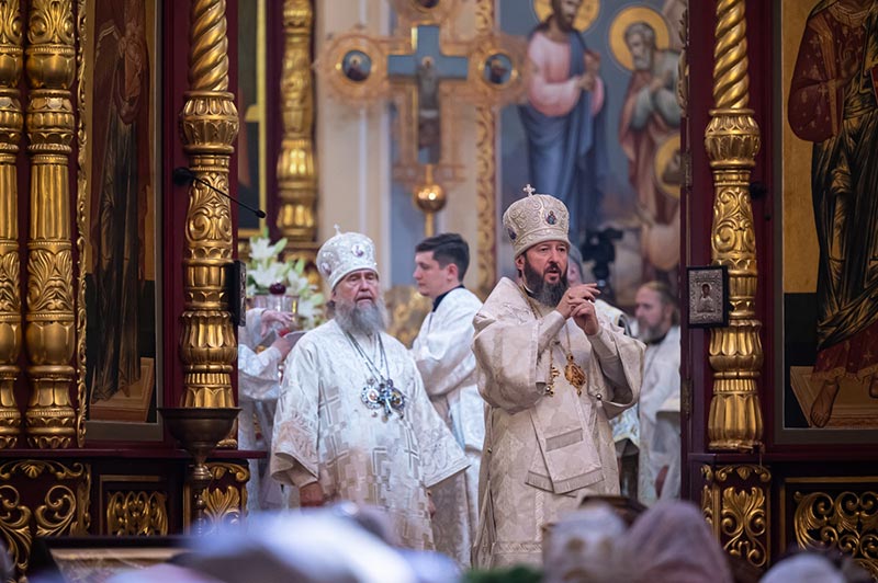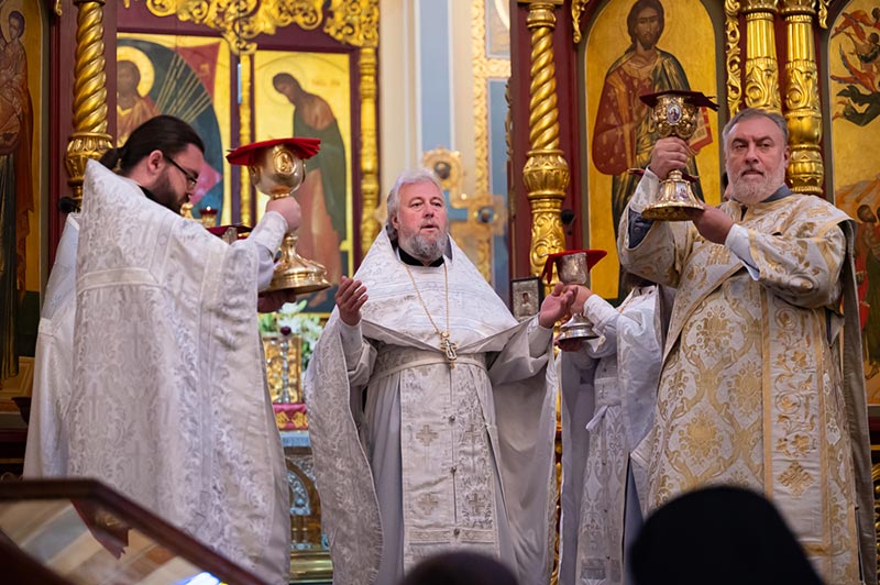 «Сегодня мы слышали удивительное обещание Господа, которое утешает нас, ободряет и дает силы человеческому духу. Эти слова Спасителя запечатлены для всех поколений верующих в святом Евангелии: «Я с вами во все дни до скончания века». Что может быть радостнее этой великой истины? Господь вечно живет с нами, Он постоянно пребывает в Своей Церкви, которую основал. Он дает Себя православным христианам в Святых Таинствах, участвуя в которых, человек реальным, действенным образом приобщается Божественной благодати. Особо это ощущается, когда после искреннего покаяния мы со смирением и сокрушением сердечным приступаем к Чаше Жизни и причащаемся Тела и Крови Господних. Именно в эти моменты мы трепетно переживаем самое близкое участие Бога в нашей судьбе, обретаем собственный духовный опыт, укрепляемся в вере и в избытке получаем радость от того, что Господь с нами. Действительно, Христос в Церкви Своей, которую Он основал, которую стяжал Кровью Своей, и которую «врата ада не одолеют». Господь утешает нас, что по вознесении на Небеса, Он всегда пребывает в Своей Церкви, спасает нас от всякого зла и возводит от земли на Небо». Из проповеди митрополита Александра.
