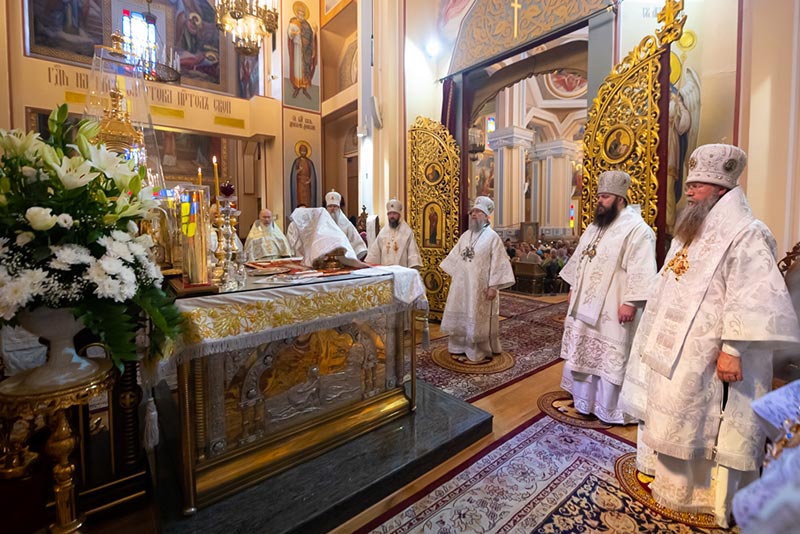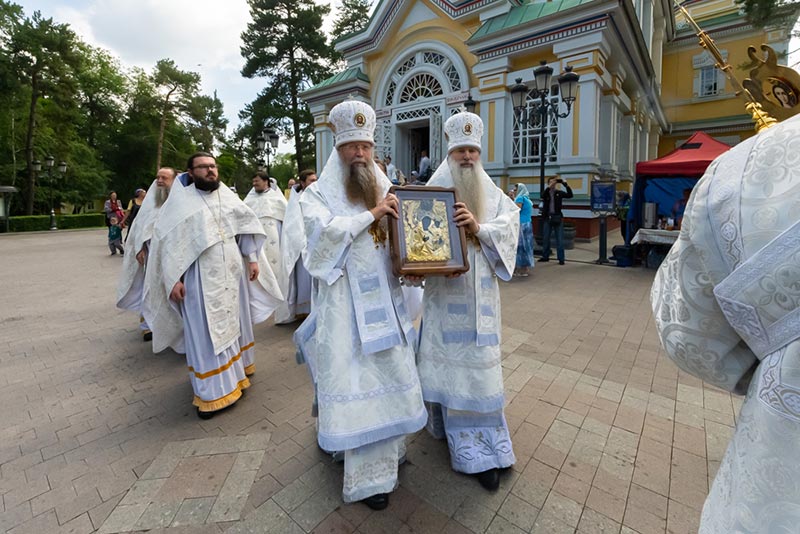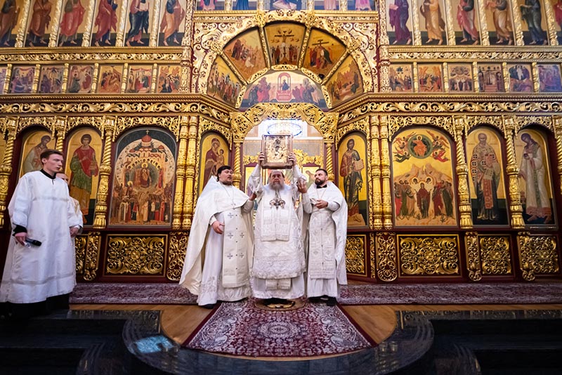 К началу богослужения в главный храм Южной столицы была доставлена чудотворная икона Пресвятой Богородицы «Одигитрия-Полонская», пребывающая в пределах Казахстана по благословению Святейшего Патриарха Московского и всея Руси.