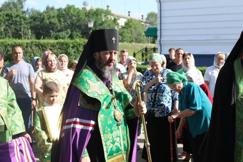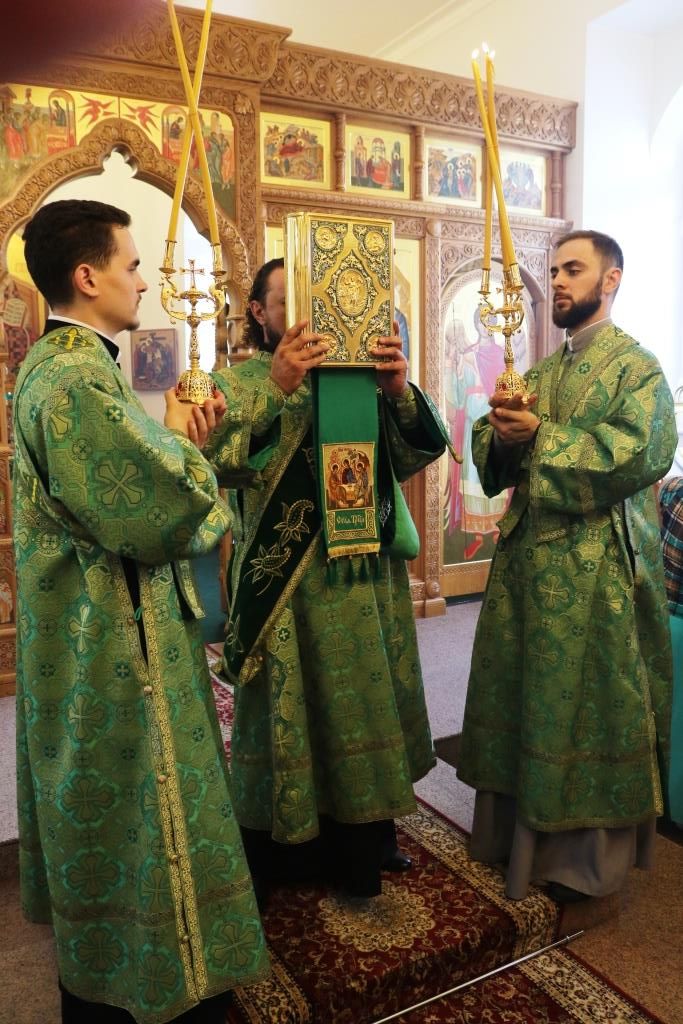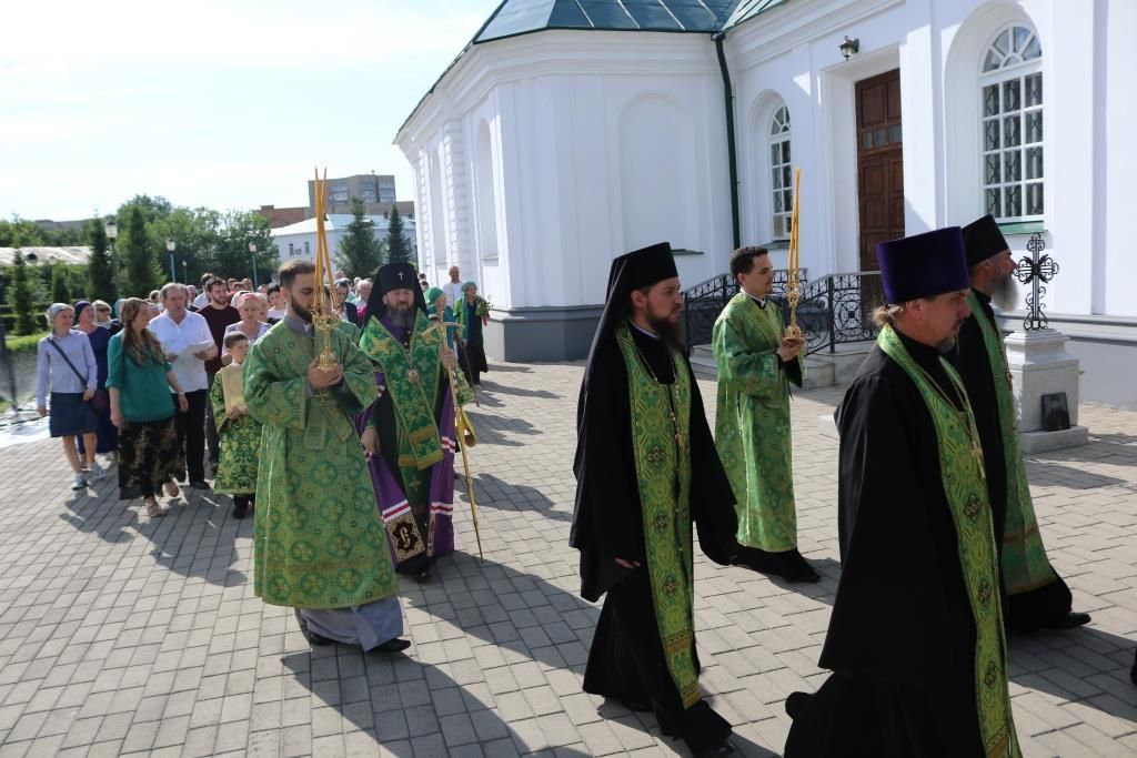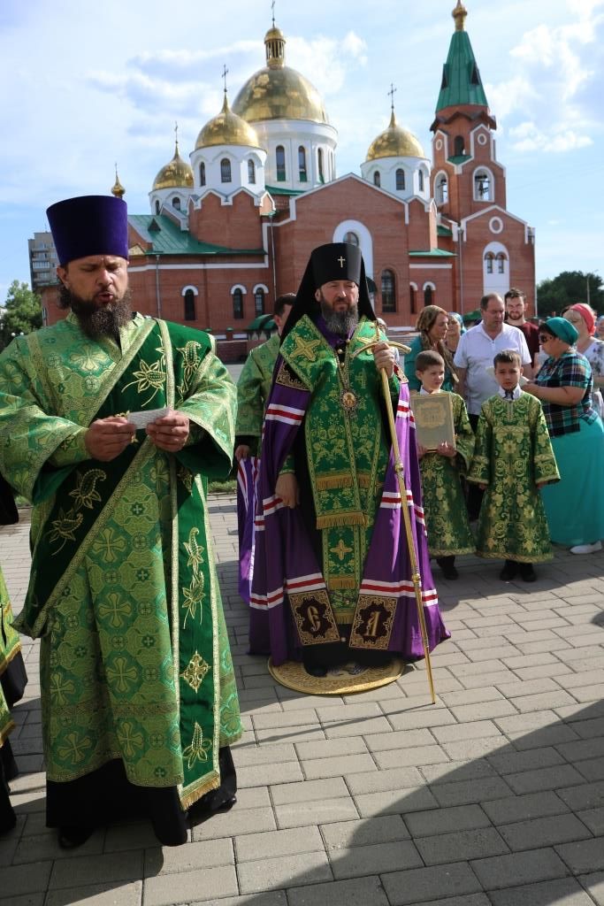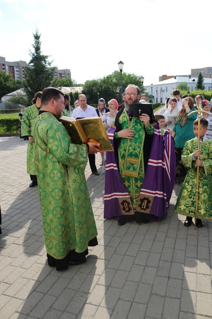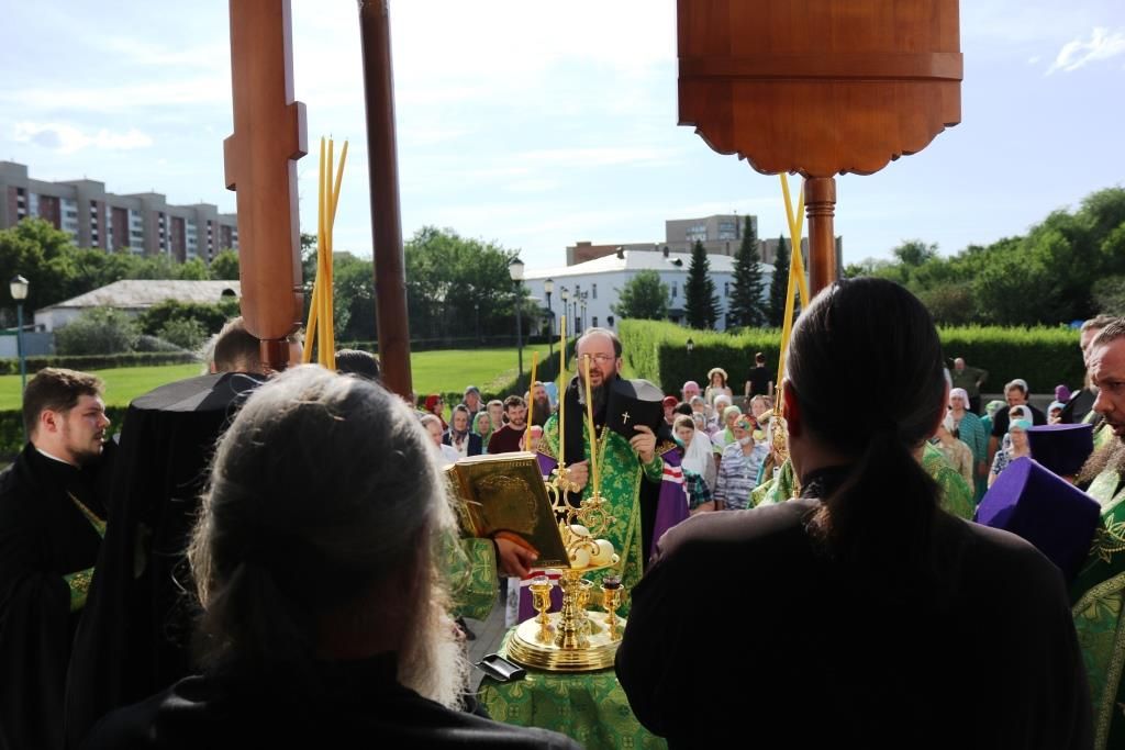 Во время литии был совершен крестный ход вокруг Свято-Троицкого собора. После прочтения евангельского зачала владыка архиепископ помазал духовенство и прихожан освященным елеем.