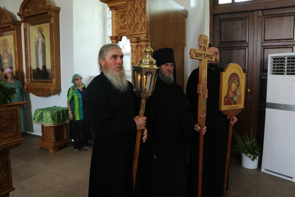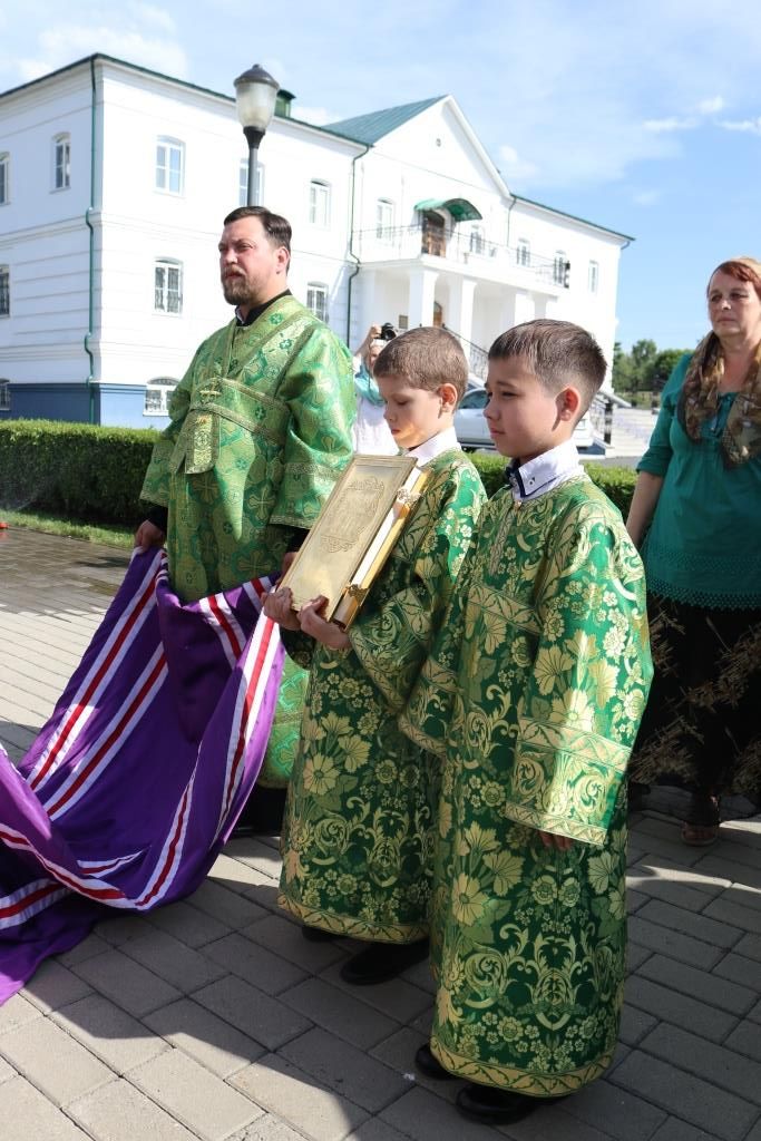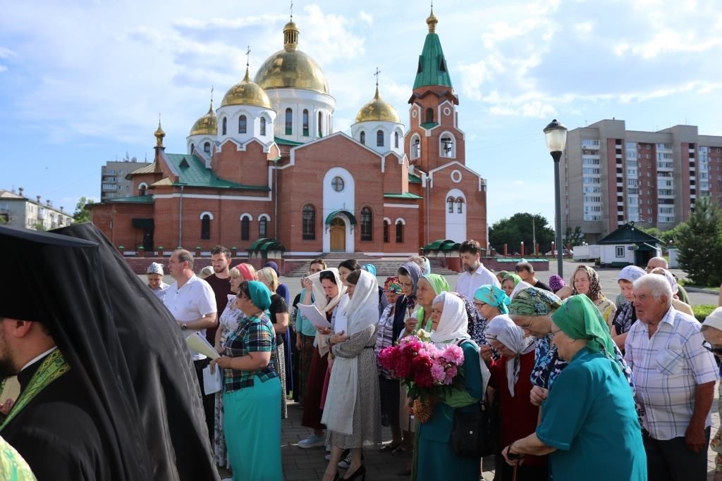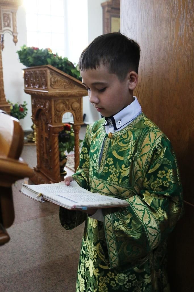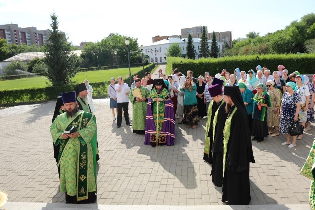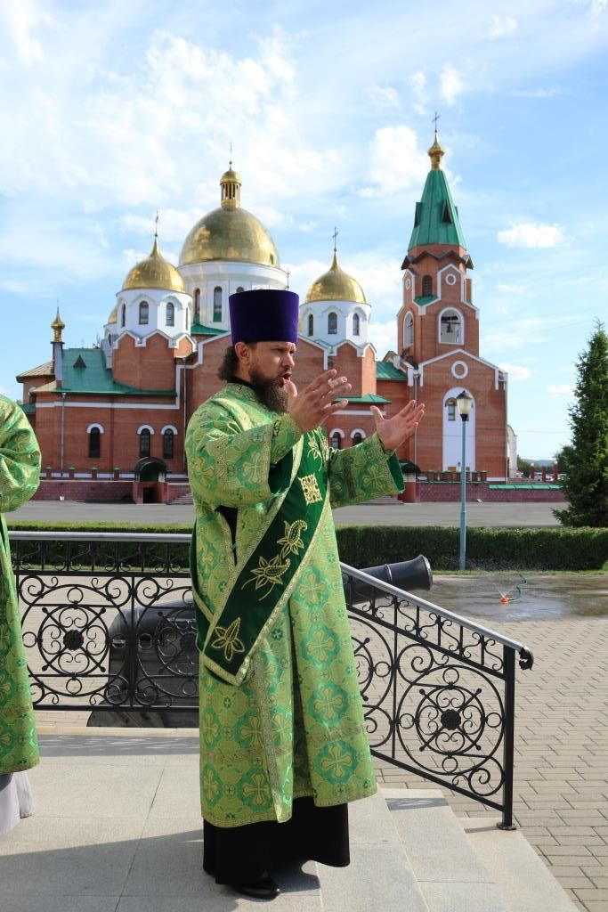 Во время литии был совершен крестный ход вокруг Свято-Троицкого собора. После прочтения евангельского зачала владыка архиепископ помазал духовенство и прихожан освященным елеем.